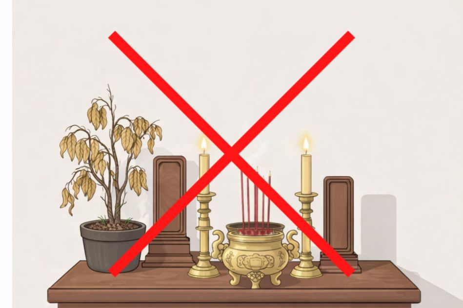 Không che khuất bài vị, ảnh thờ hoặc đèn thờ