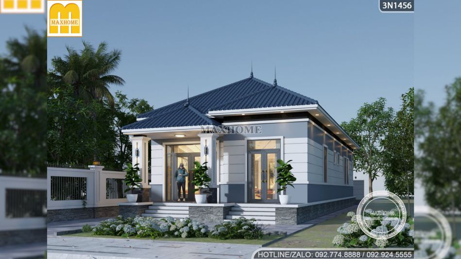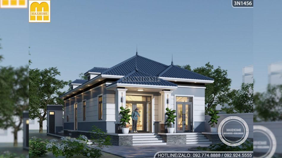 Nếu trước đây nhà cấp 4 thường gắn liền với hình ảnh đơn giản, mộc mạc thì ngày nay những mẫu thiết kế nhà cấp 4 hiện đại đã mang lại diện mạo hoàn toàn mới. Mẫu nhà đẹp dưới đây đặc biệt sử dụng gam màu trắng xanh nhã nhặn là một gợi ý tuyệt vời dành cho những ai yêu thích sự tinh tế, sang trọng nhưng vẫn gần gũi, ấm áp.