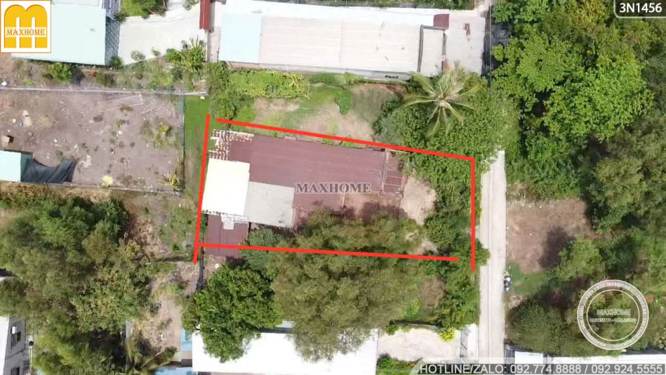 Dựa vào mặt bằng định vị công trình trên lô đất thực tế nhà anh Phong, bản vẽ thể hiện rõ cách bố trí căn nhà cấp 4 trên diện tích đất hình chữ nhật và tiếp giáp trực tiếp với đường giao thông phía trước. Công trình được đặt nhà lệch về một góc giúp tối ưu khoảng sân trước và tạo lối đi thoáng đãng bên hông