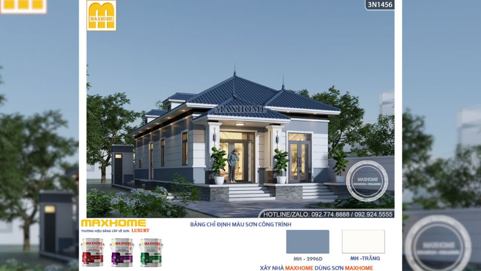 Ấn tượng với mẫu nhà cấp 4 sử dụng gam màu trắng xanh nhã nhặn | MH05183