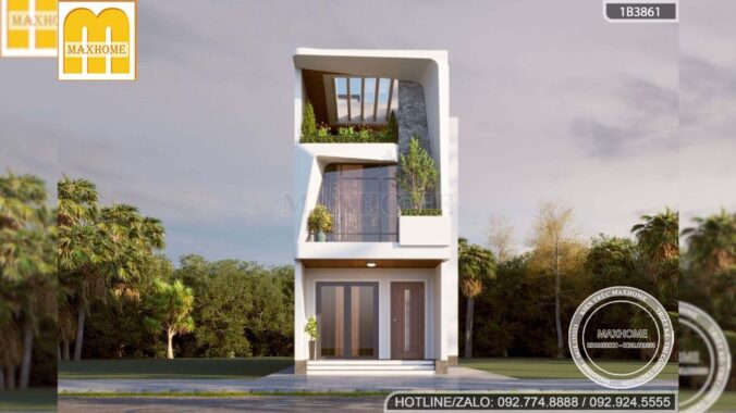 Mẫu nhà phố 3 tầng hiện đại trong phối cảnh gây ấn tượng mạnh với hình khối kiến trúc bo cong mềm mại, phá vỡ sự khô cứng thường thấy của nhà ống đô thị. […]