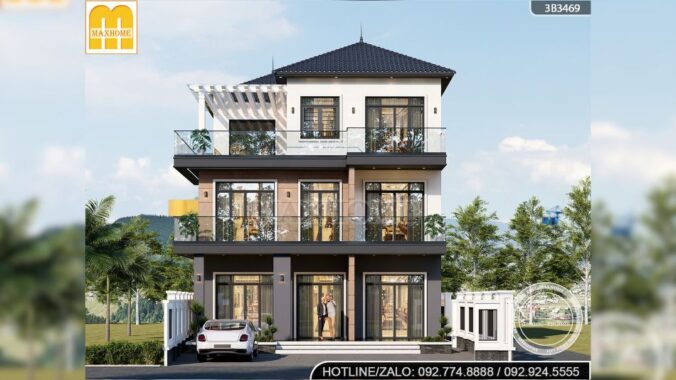 Mẫu biệt thự 3 tầng mái Nhật hiện đại với kiến trúc kính sang trọng | MH05840