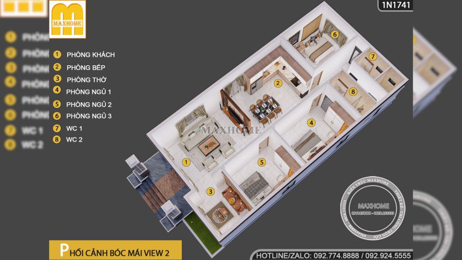 Phòng khách, phòng bếp, 3 phòng ngủ, 1 phòng tắm, 2 wc |