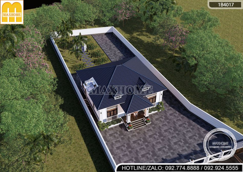 Mẫu nhà cấp 4 mái Nhật 3 phòng ngủ nổi bật với bố cục cân đối, hình khối vuông vắn, tạo nên vẻ đẹp mạnh mẽ và vững chãi. Những đường nét kiến trúc mạch lạc, dứt khoát không chỉ tôn lên sự hiện đại, tinh tế mà còn thể hiện gu thẩm mỹ tinh tế của gia chủ. Không gian ngoại thất được quy hoạch khoa học, hòa quyện cùng cảnh quan sân vườn xanh mát, mang đến cảm giác thư thái và gần gũi với thiên nhiên.