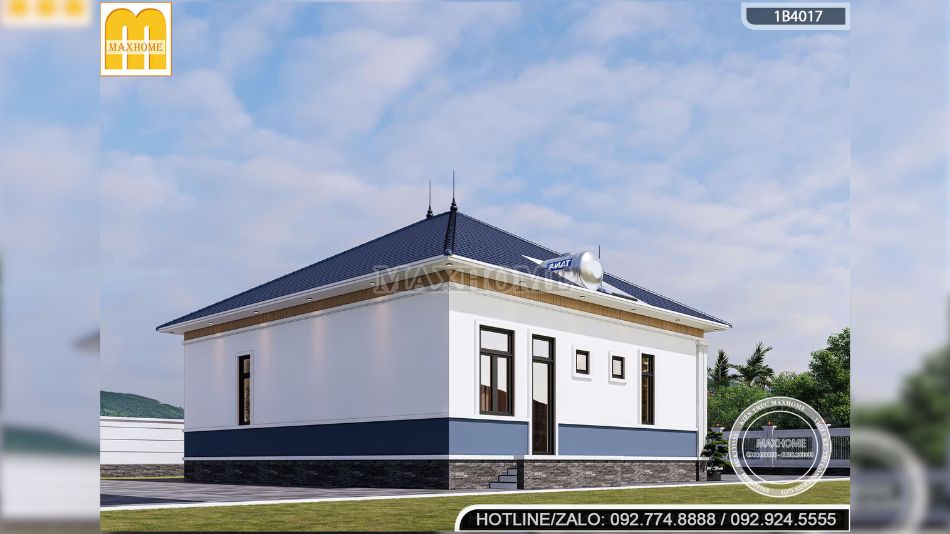 Mẫu nhà cấp 4 mái Nhật 3 phòng ngủ nổi bật với bố cục cân đối, hình khối vuông vắn, tạo nên vẻ đẹp mạnh mẽ và vững chãi. Những đường nét kiến trúc mạch lạc, dứt khoát không chỉ tôn lên sự hiện đại, tinh tế mà còn thể hiện gu thẩm mỹ tinh tế của gia chủ. Không gian ngoại thất được quy hoạch khoa học, hòa quyện cùng cảnh quan sân vườn xanh mát, mang đến cảm giác thư thái và gần gũi với thiên nhiên.