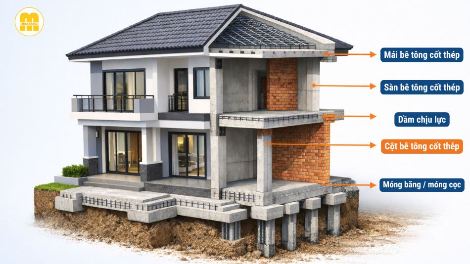 Kết cấu là phần “xương sống” của ngôi nhà, bao gồm: