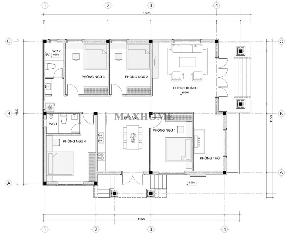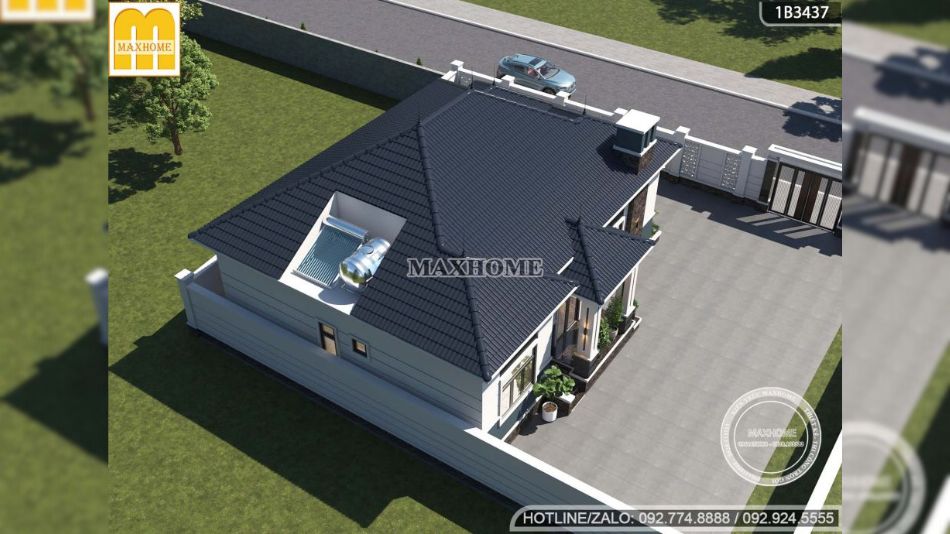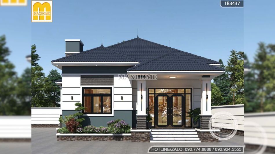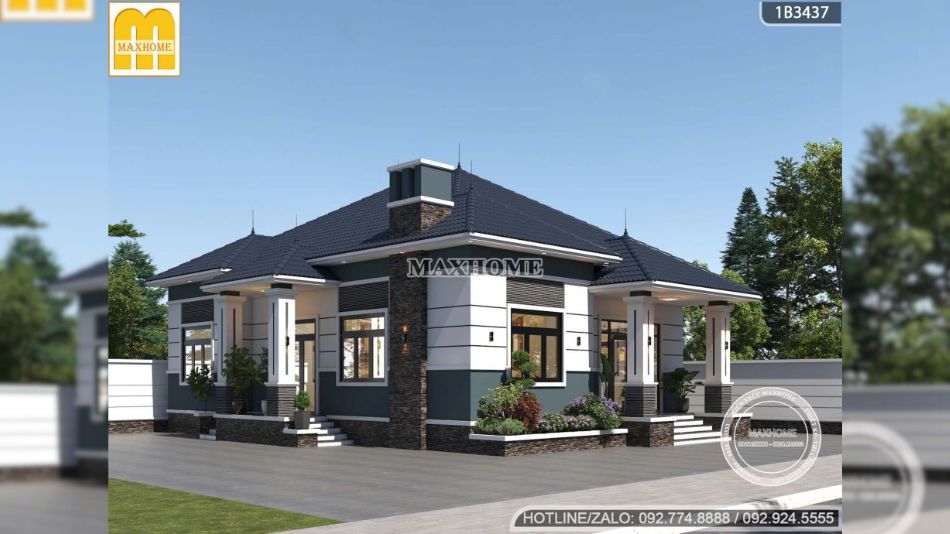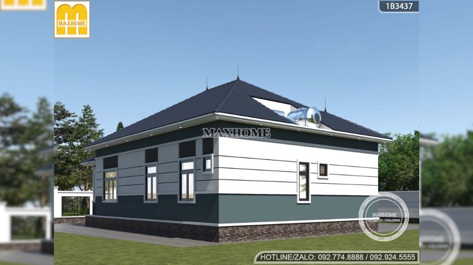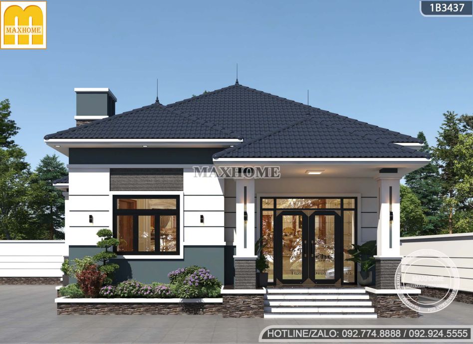 Dưới đây là bản vẽ nhà cấp 4 quen thuộc đối với nhiều khách hàng của Maxhome, được xem là “mẫu nhà quốc dân” nhờ thiết kế mang phong cách hiện đại, tinh tế và phù hợp với xu hướng kiến trúc ngày nay. Kiểu nhà này không chỉ ghi điểm bởi vẻ đẹp trẻ trung, tối giản mà còn bởi chi phí xây dựng hợp lý, giúp chủ đầu tư dễ dàng hiện thực hóa ngôi nhà mơ ước của mình. So với phong cách tân cổ điển, mẫu nhà hiện đại có thiết kế gọn gàng hơn, thi công nhanh chóng và linh hoạt trong việc bố trí công năng, đáp ứng tốt nhu cầu sử dụng của các gia đình Việt hiện nay.