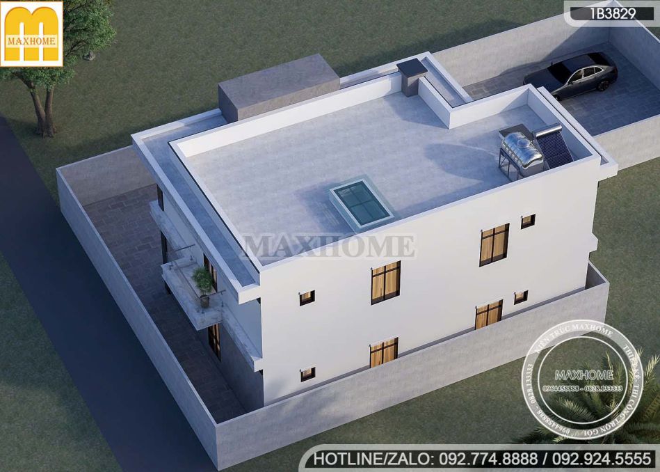 Trong kiến trúc hiện đại, mái bằng luôn là lựa chọn ưu tiên nhờ sự đơn giản, vuông vức và đồng bộ với các mảng miếng kiến trúc. Kết cấu mái bằng vững chắc với lớp bê tông kiên cố không chỉ mang lại độ bền bỉ theo thời gian mà còn bảo vệ an toàn cho biệt thự 2 tầng trước mọi điều kiện thời tiết khắc nghiệt. Bên cạnh đó, thiết kế mái phẳng còn tạo điều kiện thuận lợi cho việc bố trí sân thượng, giếng trời hoặc các tiện ích ngoài trời, góp phần tối ưu công năng và tăng tính thẩm mỹ tổng thể cho ngôi nhà.
