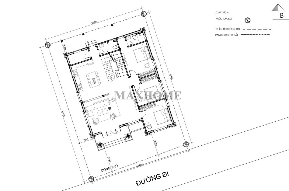 Công trình được xây dựng trên khu đất hướng Đông Bắc, có kích thước 11,2 x 16,1m với tổng diện tích sử dụng 305m², mang đến một không gian sống đẳng cấp. Quy mô rộng rãi này giúp ngôi biệt thự tối ưu công năng, đảm bảo sự thoáng đãng tự nhiên, hợp phong thủy và gìn giữ giá trị thẩm mỹ bền vững theo thời gian.