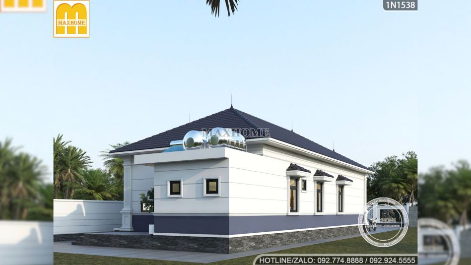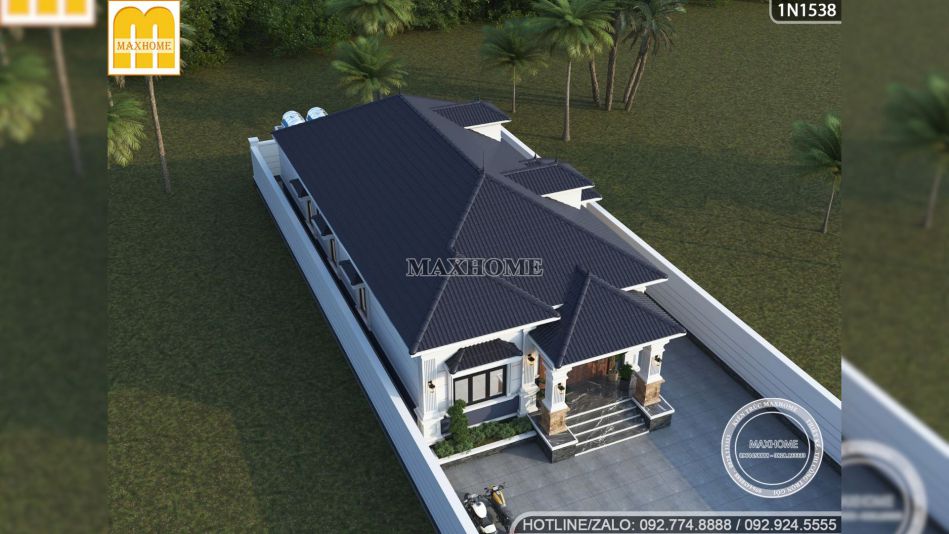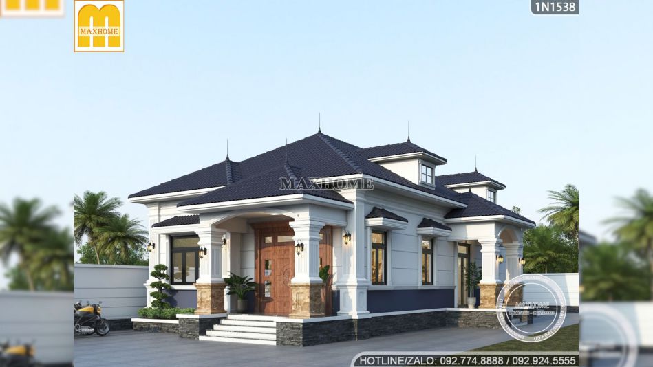 Bất cứ ai cũng phải ngỡ ngàng trước vẻ ngoài vừa thanh thoát vừa bề thế của công trình biệt thự vườn 1 tầng đẹp này, nơi mà mọi chi tiết dù là nhỏ nhất cũng được chau chuốt để tạo nên một tổng thể hài hòa đến lạ kỳ, định nghĩa lại khái niệm nhà ở quê theo một đẳng cấp hoàn toàn mới.
