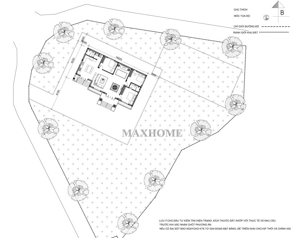Dựa trên mặt bằng định vị, công trình được thiết kế theo hướng Tây Nam, mang lại sự hài hòa về phong thủy cũng như nguồn sáng tự nhiên chan hòa cho không gian sống.