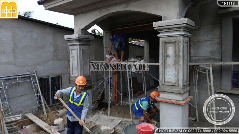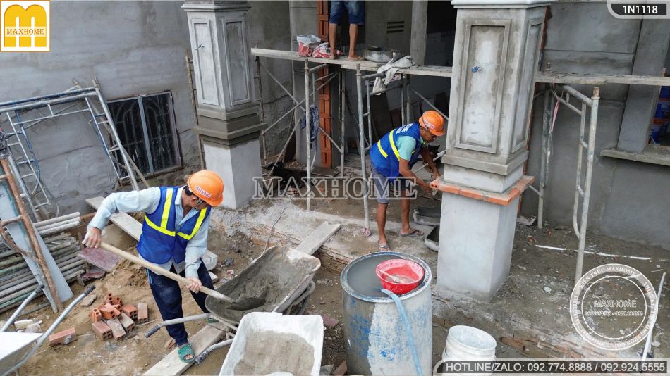 Trong quá trình thi công, đội ngũ thợ Maxhome luôn làm việc với tinh thần trách nhiệm cao, tuân thủ quy trình kỹ thuật nghiêm ngặt. Từng công đoạn từ trộn vữa, xây dựng đến hoàn thiện chi tiết đều được thực hiện cẩn trọng, đảm bảo độ chính xác và tính thẩm mỹ. Chính sự chỉn chu này đã góp phần tạo nên những công trình bền vững, sang trọng và đúng chuẩn chất lượng thương hiệu Maxhome.