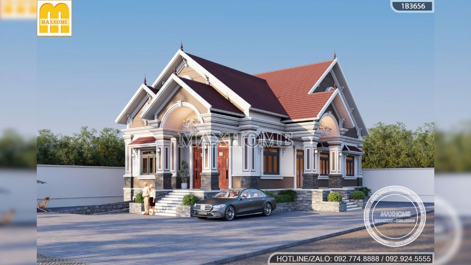 Biệt thự 1 tầng 1 hầm mái Thái tân cổ điển một lần nữa khẳng định năng lực thiết kế chuyên nghiệp của đội ngũ KTS Maxhome. Từng chi tiết đều được tính toán tỉ mỉ, cân nhắc về tỷ lệ và công năng, tạo nên một công trình đạt đến độ hoàn hảo cả về hình thức lẫn giá trị sử dụng. Dưới ánh nắng sớm, căn biệt thự hiện lên kiêu sa và rực rỡ, tựa như một bức tranh sống động mang đậm phong thái quý tộc – nơi vẻ đẹp đẳng cấp và phong cách sống thượng lưu được tôn vinh trọn vẹn.
