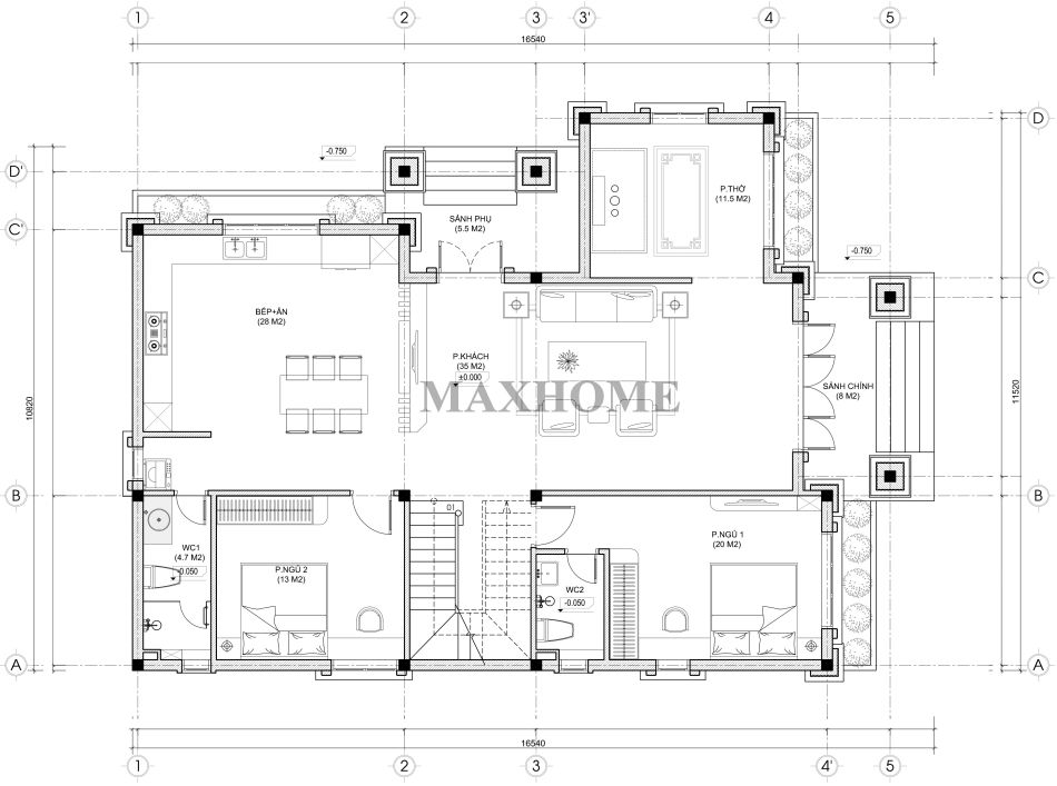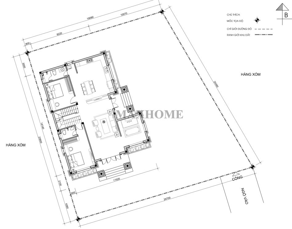 Sau khi tiếp nhận yêu cầu và mong muốn của gia đình chú Đức, Maxhome đã nhanh chóng về khảo sát thực trạng khu đất và đưa ra phương án thiết kế cho biệt thự mái Nhật 2 tầng như sau.
