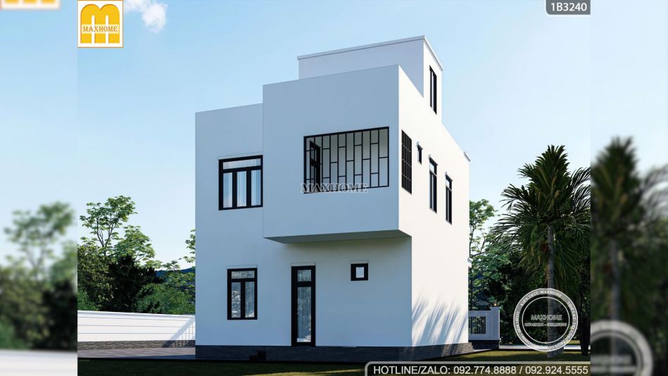 Ngôi nhà 2 tầng 1 tum này thu hút hơn 250 lượt xem bởi phong cách kiến trúc hiện đại, vuông vắn và dứt khoát khiến nhiều người yêu thích. Maxhome đã khai thác triệt để ưu điểm của hình khối lập phương để mang lại vẻ đẹp tối giản nhưng không hề đơn điệu. Các mảng tường phẳng, đường nét thẳng kết hợp với hệ cửa kính khung nhôm màu đen nổi bật trên nền sơn trắng chủ đạo đã tạo nên một diện mạo thanh lịch và đầy tinh thần thời đại. Tất cả các yếu tố trên sẽ giúp ngôi nhà anh Dũng không chỉ đẹp về hình thức mà còn đảm bảo độ bền vững theo thời gian.
