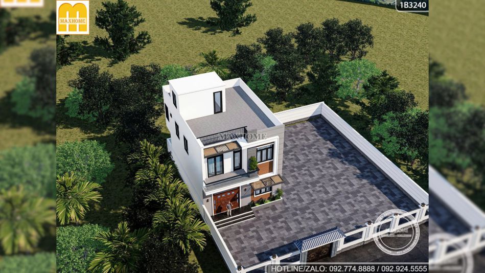Sự kết hợp hài hòa giữa hình khối mạnh mẽ, màu sắc tinh tế và không gian sân vườn rộng mở đã tạo nên một mẫu nhà 2 tầng 1 tum vô cùng ấn tượng, mọi chi tiết ở công trình này đều toát lên sự tinh tế và đẳng cấp. Mời bạn tham khảo mẫu nhà đẹp do Maxhome thiết kế cho anh Dũng ở Hưng Yên ngay trong bài viết này nhé!