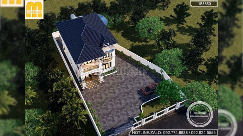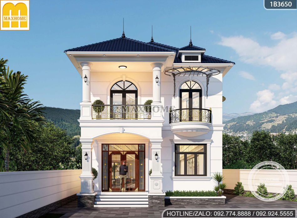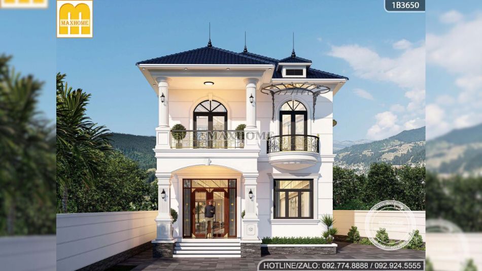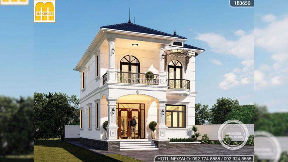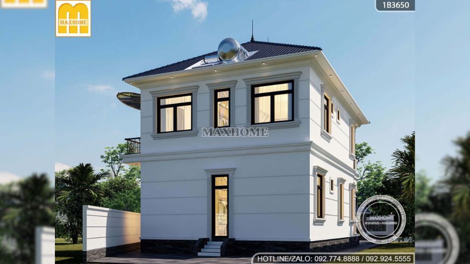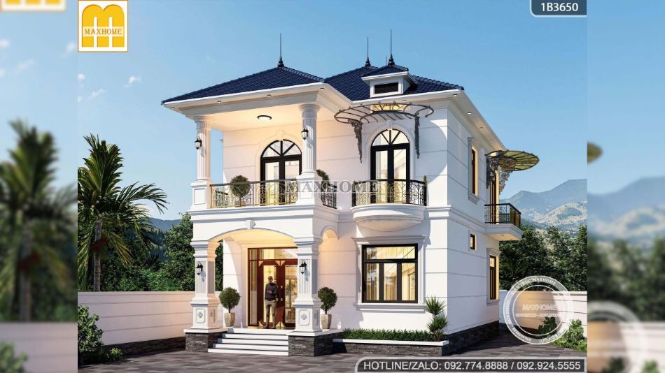 Mẫu nhà đẹp được khoác lên mình lớp sơn trắng kem tinh tế, giúp tôn lên vẻ sang trọng và làm nổi bật hệ lan can ban công bằng sắt sơn mỹ thuật cao cấp. Gam màu trắng kem không chỉ mang lại cảm giác nhẹ nhàng, thanh thoát mà còn giúp tổng thể công trình trở nên sáng và hài hòa hơn dưới mọi góc nhìn. Đặc biệt, với những công trình thực tế do Maxhome trực tiếp thiết kế và thi công, màu sơn được phối chuẩn xác và đồng nhất, bởi đây là dòng sơn cao cấp do chính Maxhome sản xuất, đảm bảo độ bền màu vượt trội và chất lượng thẩm mỹ cao theo thời gian.