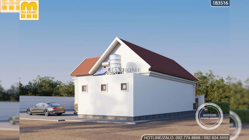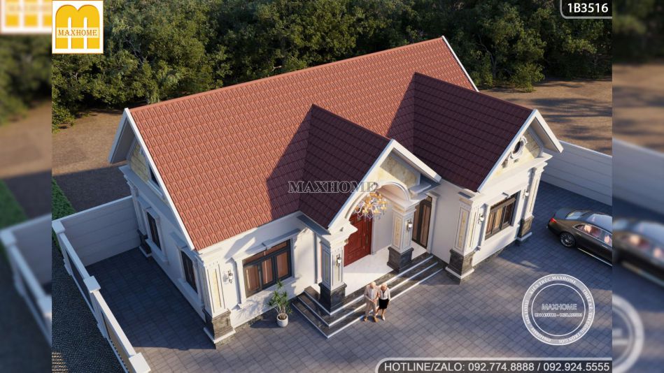 Ngay từ cái nhìn đầu tiên, mẫu nhà cấp 4 mái Thái tân cổ điển của nhà chú Hùng ở Thanh Hoá đã mang đến cảm giác choáng ngợp bởi vẻ đẹp bề thế, chỉn chu và rất có chiều sâu. Đây là một trong những thiết kế nổi bật được thực hiện bởi Maxhome – đơn vị thiết kế kiến trúc hàng đầu Việt Nam.