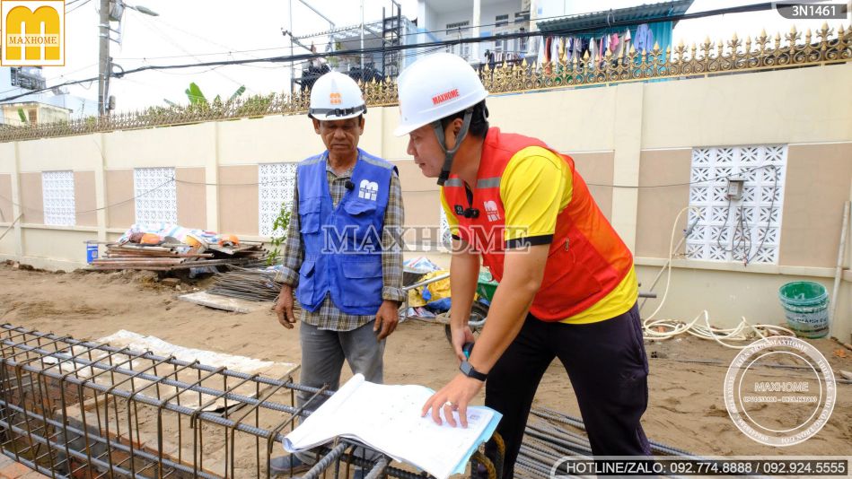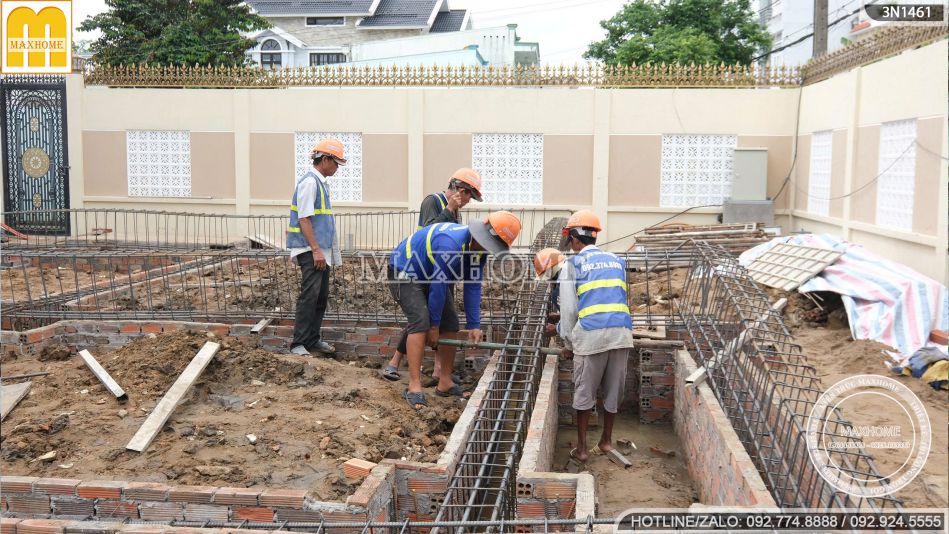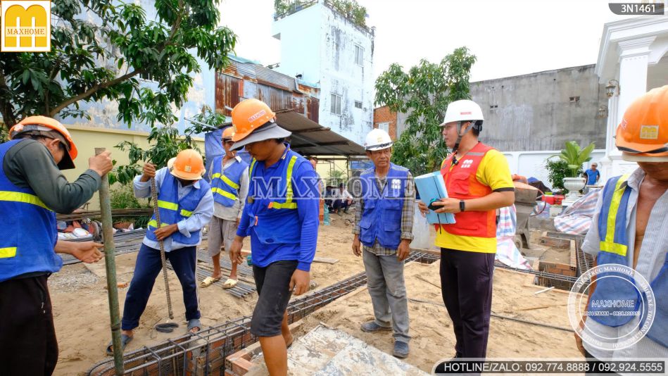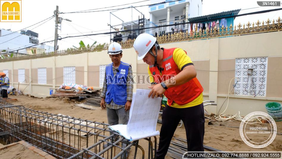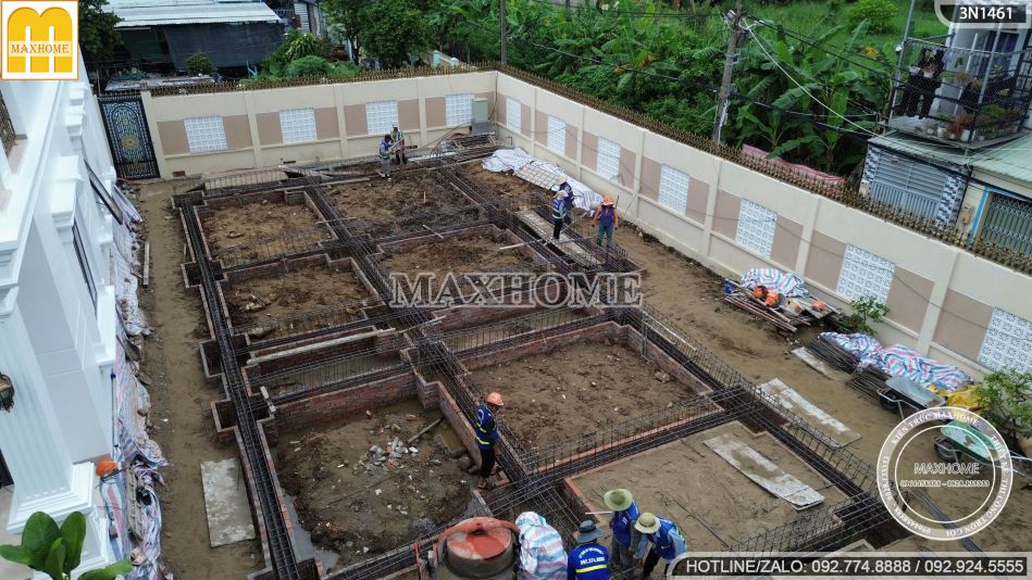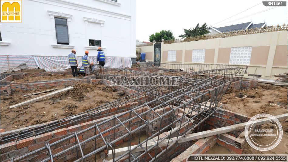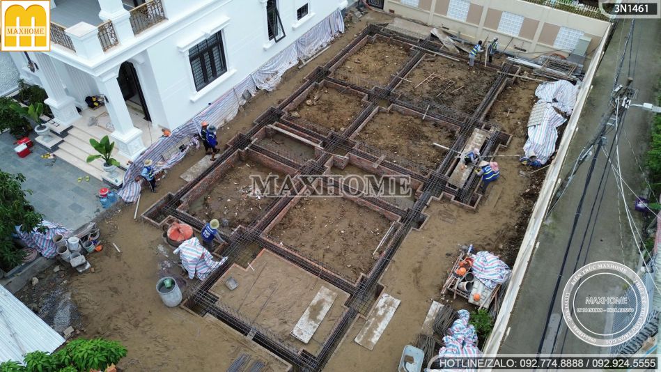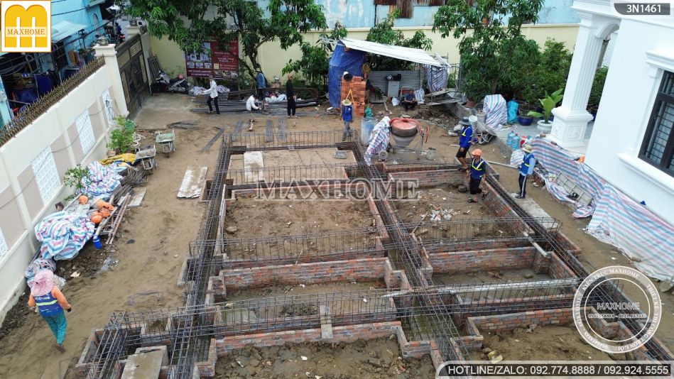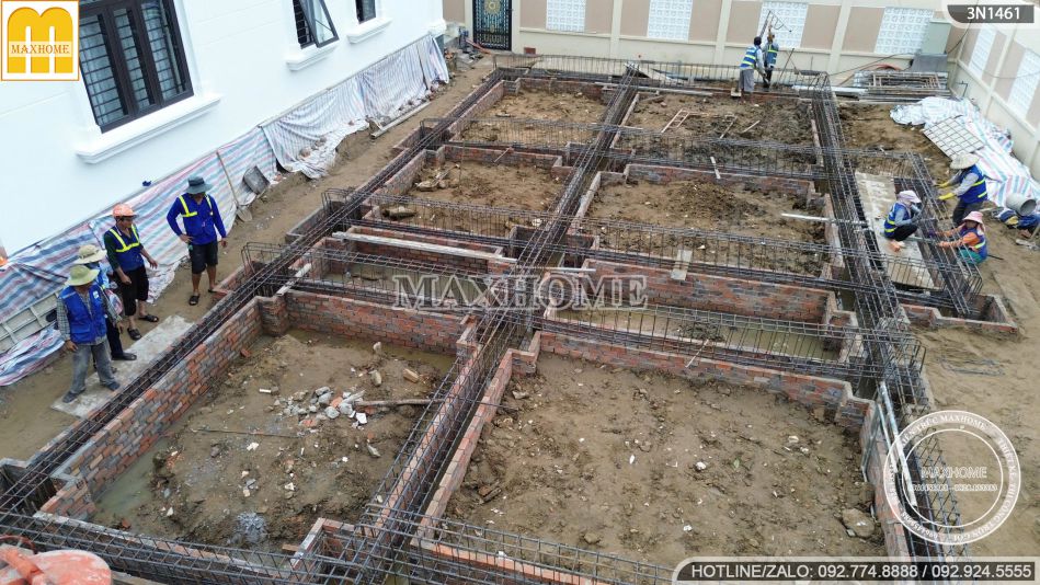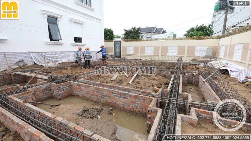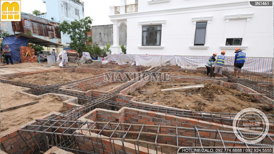 Đội ngũ kỹ thuật Maxhome đã trực tiếp có mặt tại TP.HCM để giám sát hạng mục thi công phần móng cho biệt thự tân cổ điển 2 tầng mái Nhật của gia đình anh Nhựt. Đây là giai đoạn nền tảng, giữ vai trò quyết định đến sự vững chắc và bền bỉ của toàn bộ công trình, nên mọi bước đều được thực hiện cẩn trọng và chính xác tuyệt đối. Sự giám sát chặt chẽ của Maxhome đảm bảo quy trình thi công đạt chuẩn kỹ thuật đem lại chất lượng cao nhất cho công trình cùng sự an tâm tuyệt đối cho gia chủ.