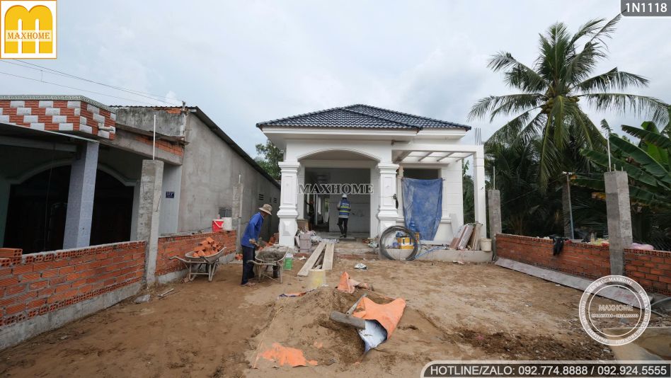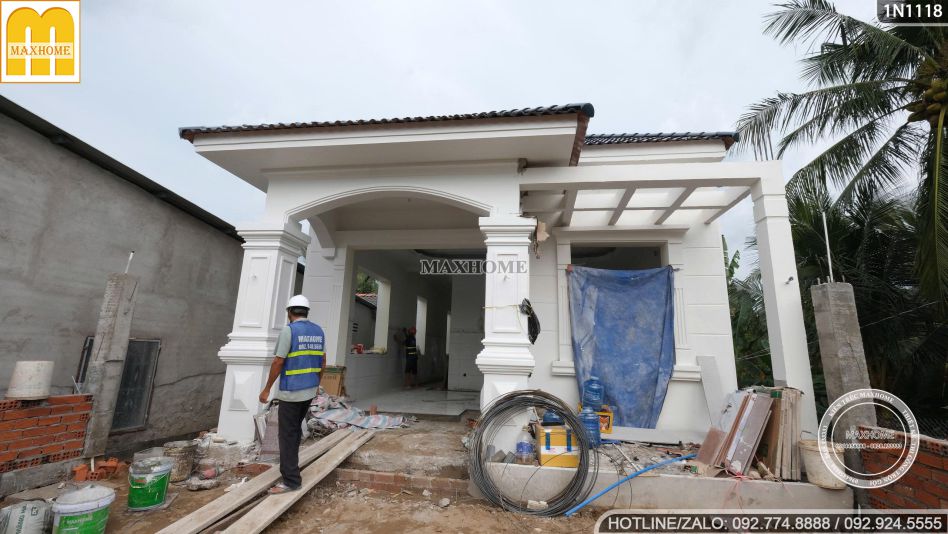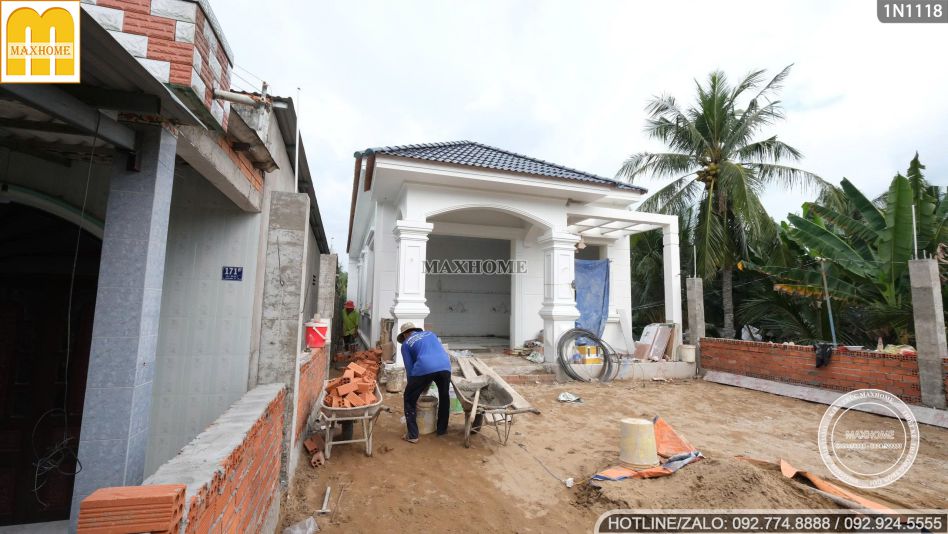 Hiện tại, căn nhà vườn tân cổ đã hoàn tất phần tô trát và đang chờ bước sang giai đoạn bột bả, sơn nước. Khi lớp sơn phủ lên sẽ thấy được từng mảng tường sáng bừng sức sống, tôn lên vẻ đẹp của lối kiến trúc tân cổ điển. Sau đó, đội ngũ thi công Maxhome sẽ tiến hành lát gạch, hoàn thiện sàn nhà và các chi tiết nội thất.
