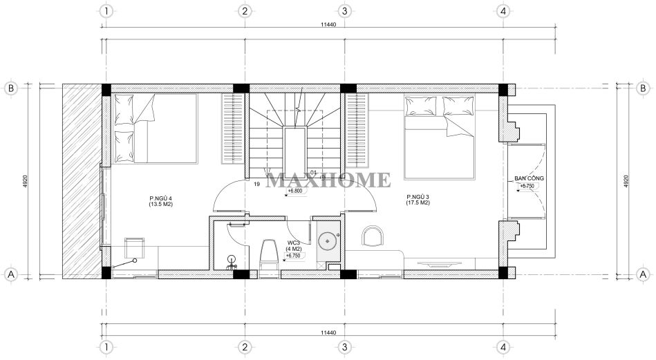 Khám phá mẫu nhà phố 4 tầng 1 tum hiện đại, bố trí công năng chuẩn sống đô thị | MH05745
