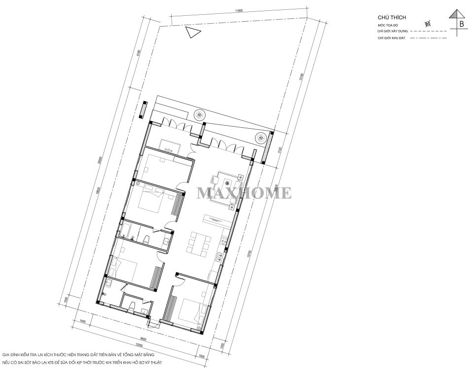 Về vị trí, công trình nằm ở hướng Đông Bắc, kích thước xây dựng 10,4 x 18,4m, mang đến diện tích sử dụng khoảng 155m². Từng không gian được bố trí khoa học, đảm bảo sự tiện nghi, thông thoáng và thuận lợi trong sinh hoạt hàng ngày.