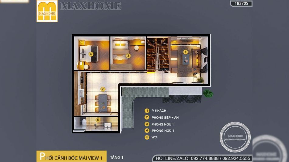 Sở hữu thiết kế trẻ trung, đường nét mạnh mẽ và bố cục không gian thông minh, mẫu nhà phố 2 tầng chữ L hiện đại đang trở thành lựa chọn lý tưởng cho các gia đình yêu thích sự tiện nghi và sang trọng. Phối cảnh 3D được thể hiện sống động, giúp người xem cảm nhận trọn vẹn vẻ đẹp kiến trúc, từ hình khối ngoại thất đến cách xử lý màu sắc và vật liệu. Đây không chỉ là một mẫu nhà đẹp mà còn là giải pháp tối ưu cho những khu đất phố muốn khai thác công năng hiệu quả và tạo điểm nhấn độc đáo trong cảnh quan đô thị.