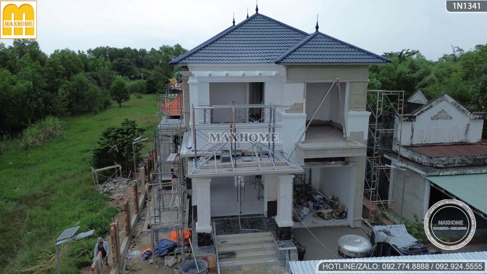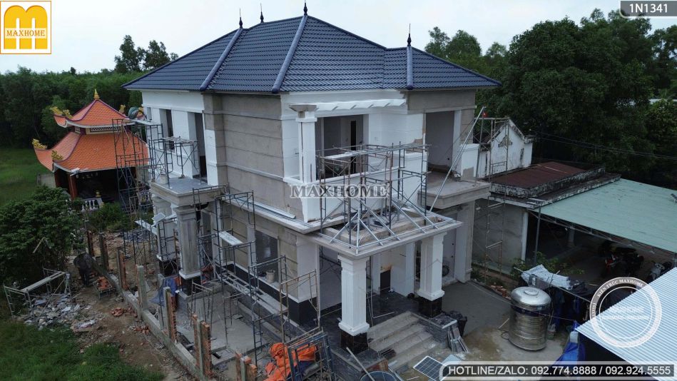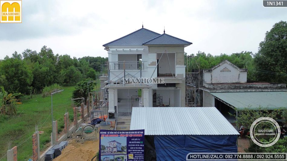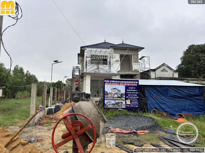 Ngôi nhà 2 tầng mái Nhật được thiết kế và xây dựng theo phong cách hiện đại, chú trọng đến công năng sử dụng và tính thẩm mỹ trong từng chi tiết. Thời gian thi công trung bình của các công trình loại này thường dao động từ 4 đến 6 tháng, tùy thuộc vào điều kiện địa lý, thời tiết và đặc điểm nền đất tại khu vực xây dựng. Trong quá trình thi công, Maxhome luôn đảm bảo tiến độ, chất lượng vật liệu và kỹ thuật xây dựng, giúp công trình hoàn thiện đúng kế hoạch, bền đẹp và an toàn theo thời gian.