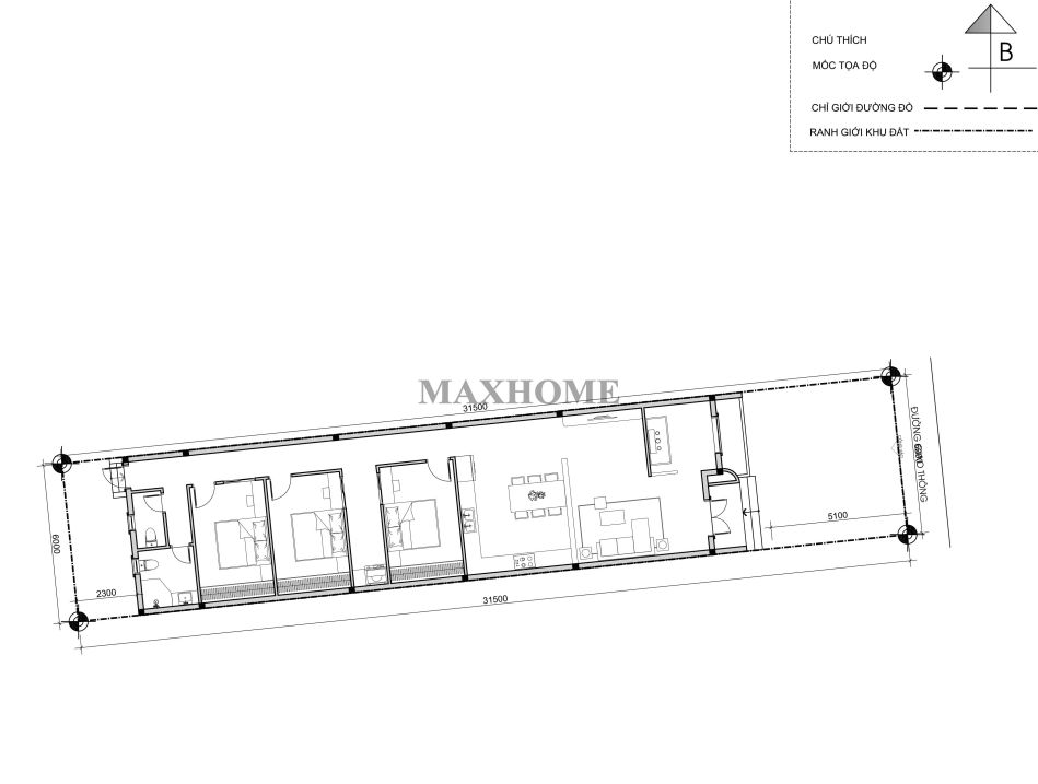 Từ cửa chính bước vào là không gian phòng khách rộng rãi, được bố trí kết hợp với khu vực phòng thờ trang nghiêm, đảm bảo sự tôn kính và thuận tiện trong sinh hoạt hằng ngày. Tiếp nối phía sau là khu vực bếp và phòng ăn được sắp xếp gọn gàng, thông thoáng, tạo cảm giác ấm cúng cho các bữa sum họp gia đình. Cuối nhà là 3 phòng ngủ bố trí liền kề, đáp ứng nhu cầu nghỉ ngơi riêng tư, cùng sử dụng một nhà vệ sinh và phòng tắm chung đặt ở cuối nhà, giúp tối ưu diện tích và thuận tiện trong quá trình sử dụng.
