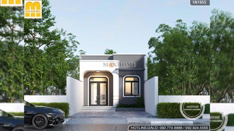 Không chỉ gói gọn trong những hình khối vuông vức đặc trưng của kiến trúc hiện đại, mẫu nhà 1 tầng mái bằng còn được khéo léo tạo điểm nhấn bằng các mảng tường uốn cong mềm mại, mang đến cảm giác uyển chuyển và tinh tế cho tổng thể công trình. Gam màu trắng được sử dụng làm tông màu chủ đạo, kết hợp hài hòa cùng sắc ghi tại các mảng tường nhấn, vừa tôn lên vẻ đẹp thanh lịch, hiện đại vừa giúp ngôi nhà trở nên nổi bật, bền đẹp và không lỗi thời theo thời gian.