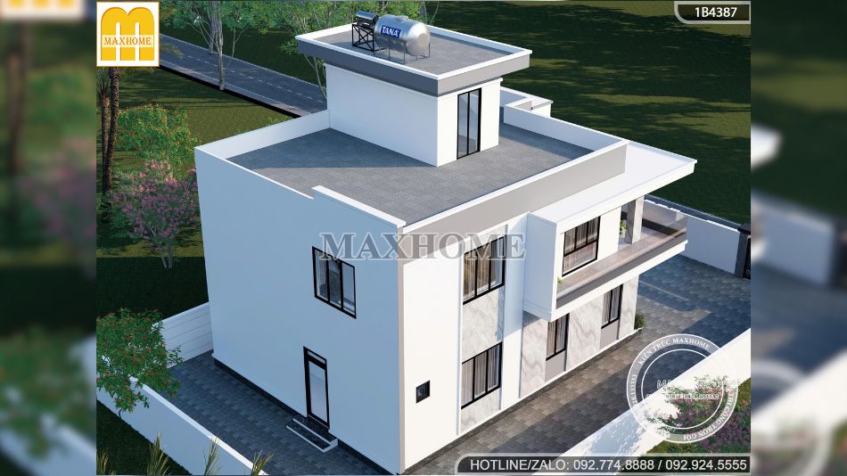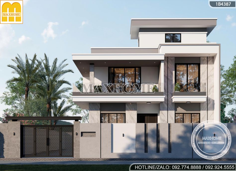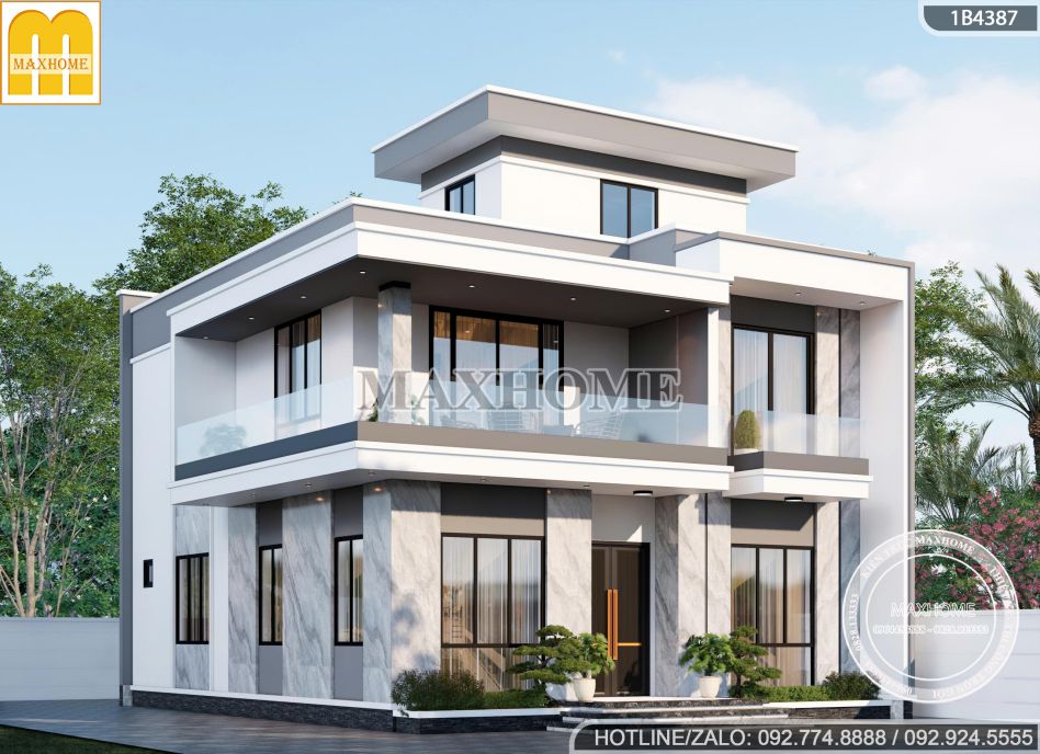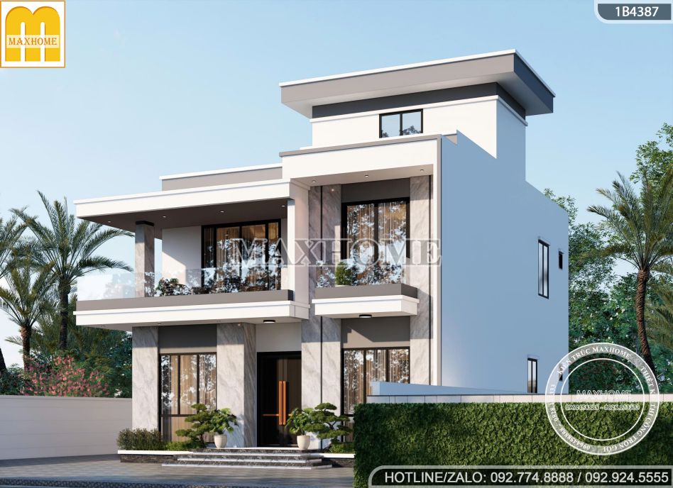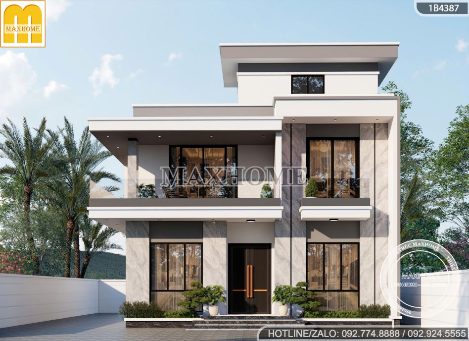 Mẫu nhà 2 tầng 1 tum mái bằng đẹp hiện đại tinh tế đáng xây nhất | MH06021
