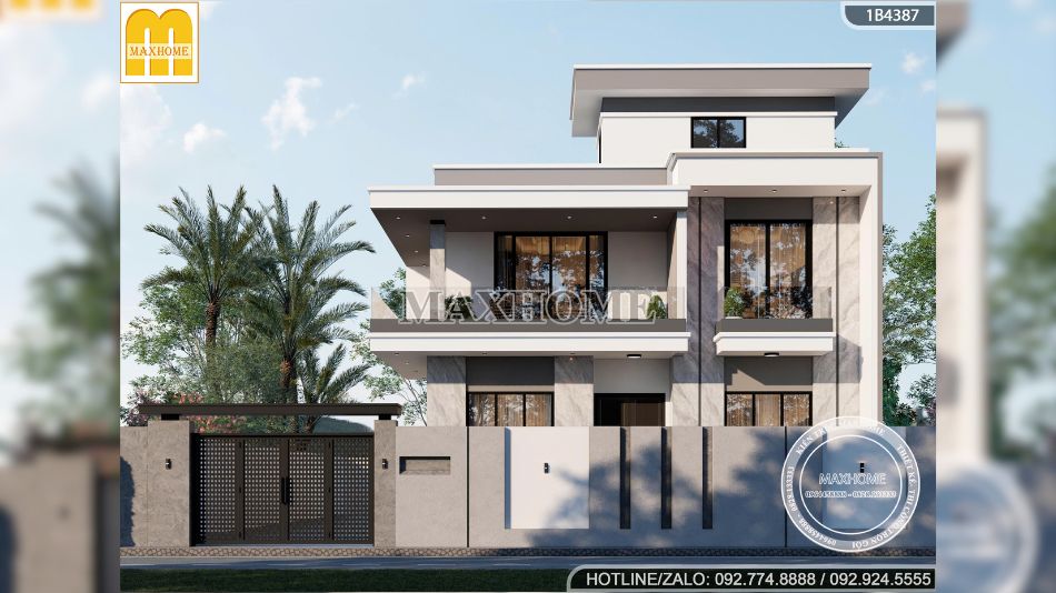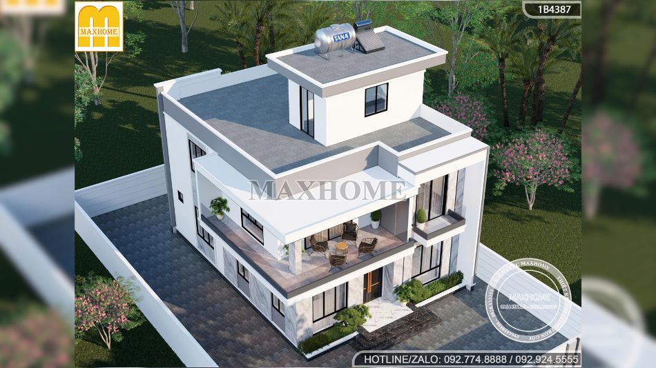 Mẫu nhà 2 tầng 1 tum mái bằng sở hữu vẻ đẹp cân đối, khỏe khoắn nhưng không kém phần tinh tế, tạo cảm giác sang trọng và cuốn hút ngay từ cái nhìn đầu tiên. Dù quan sát ở bất kỳ góc độ nào, ngôi nhà vẫn giữ được sự nhất quán về thẩm mỹ, đồng thời tối ưu công năng sử dụng, đáp ứng trọn vẹn nhu cầu sinh hoạt của gia đình hiện đại. Đây cũng là minh chứng rõ nét cho tư duy thiết kế sáng tạo, sự tận tâm và tính chuyên nghiệp của đội ngũ kiến trúc sư Maxhome trong hành trình kiến tạo những không gian sống tiện nghi, đẳng cấp và bền vững theo thời gian.