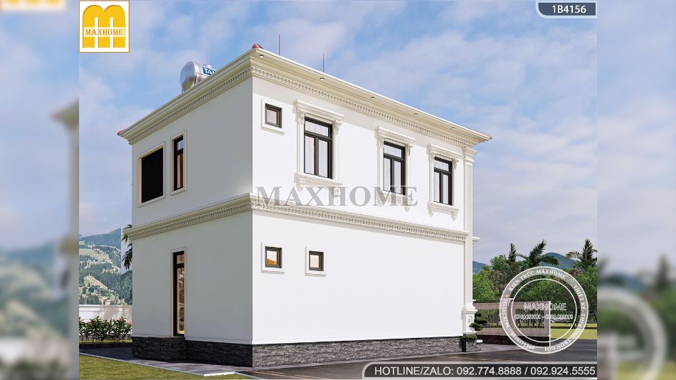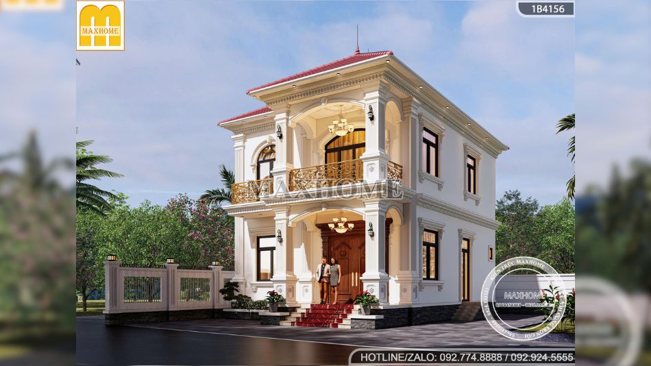 Mẫu nhà 2 tầng mái Nhật tân cổ điển gây ấn tượng mạnh ngay từ cái nhìn đầu tiên bởi vẻ đẹp bề thế, sang trọng nhưng vẫn rất hài hòa với cảnh quan xung quanh. Công trình là sự kết hợp tinh tế giữa tinh thần kiến trúc tân cổ điển châu Âu và phong cách mái Nhật hiện đại, tạo nên một tổng thể cân đối, thanh lịch và trường tồn theo thời gian. Điểm nhấn nổi bật nhất chính là hệ mái ngói đỏ sang trọng, nổi bật trên nền tường trắng tinh khôi, mang lại cảm giác ấm áp, vững chãi và đầy cuốn hút.