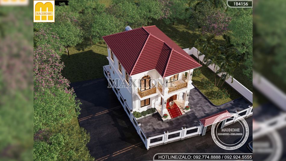 Mẫu nhà 2 tầng mái Nhật tân cổ điển nổi bật với mái ngói đỏ sang trọng | MH05829