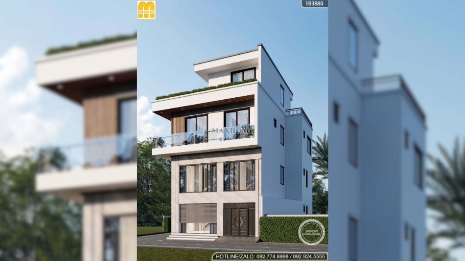 Mẫu nhà 3 tầng 1 lửng hiện đại đa năng, phù hợp kinh doanh | MH05727
