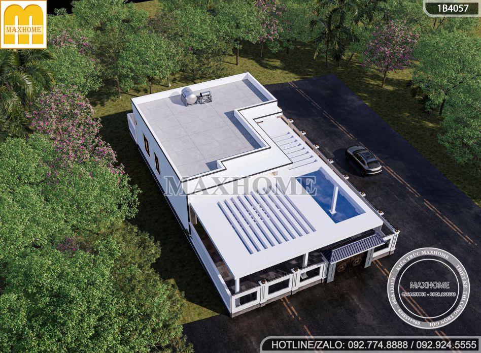 Loại hình: Nhà chữ L mái bằng hiện đại Tổng diện tích: 115m2