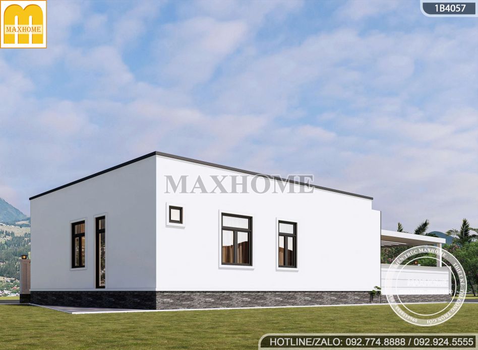 Xu hướng nhà cấp 4 mái bằng chữ L ngày càng được ưa chuộng nhờ kiểu dáng trẻ trung, bố cục linh hoạt và khả năng tối ưu diện tích vượt trội. Nắm bắt tinh thần đó, Maxhome đã thiết kế cho gia đình chú Chu tại Hà Tĩnh một mẫu nhà siêu ấn tượng, kết hợp chuẩn mực thẩm mỹ hiện đại với công năng tiện nghi. Công trình không chỉ cuốn hút bởi đường nét hài hòa mà còn thể hiện rõ phong cách sống tinh tế, cá tính và đầy sự chỉn chu của gia chủ.