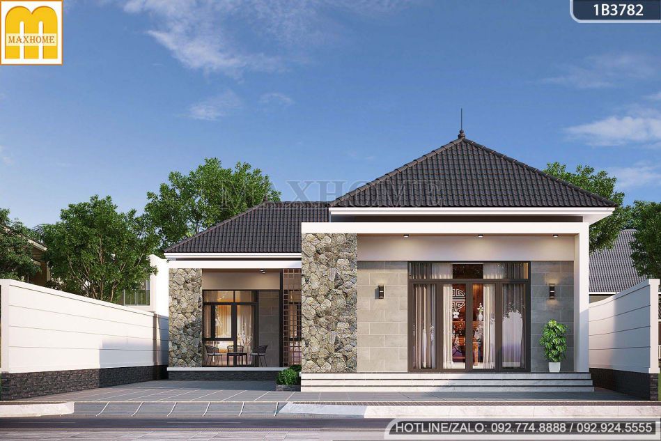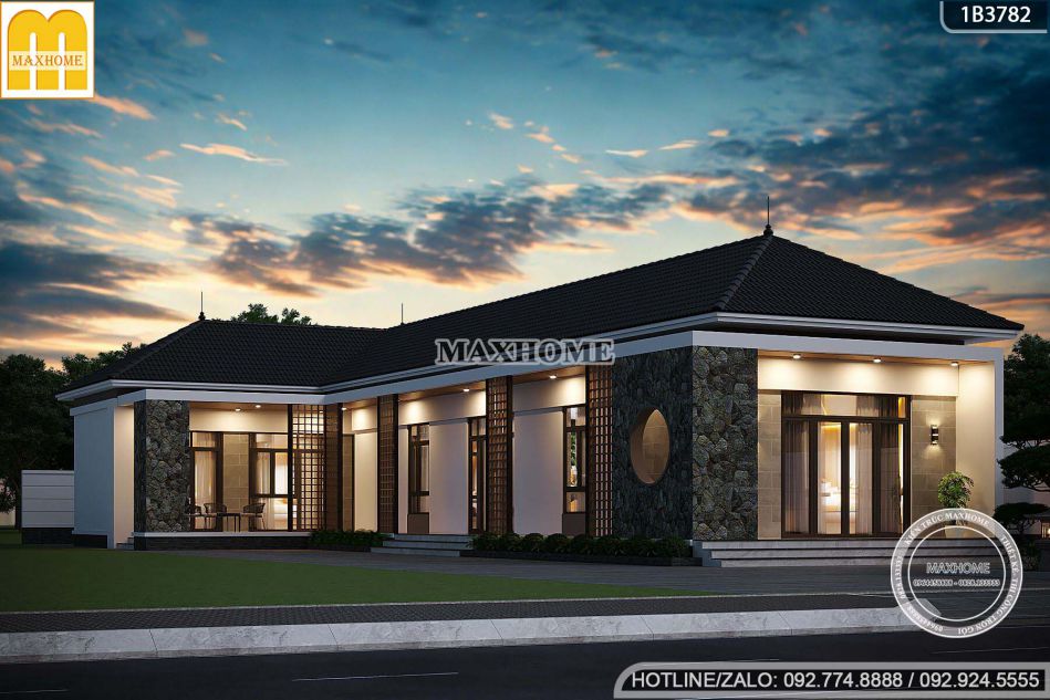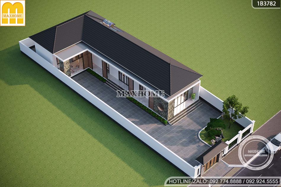 Mẫu nhà cấp 4 mái Nhật chữ L đẹp tại nông thôn sang trọng và hiện đại | MH05661