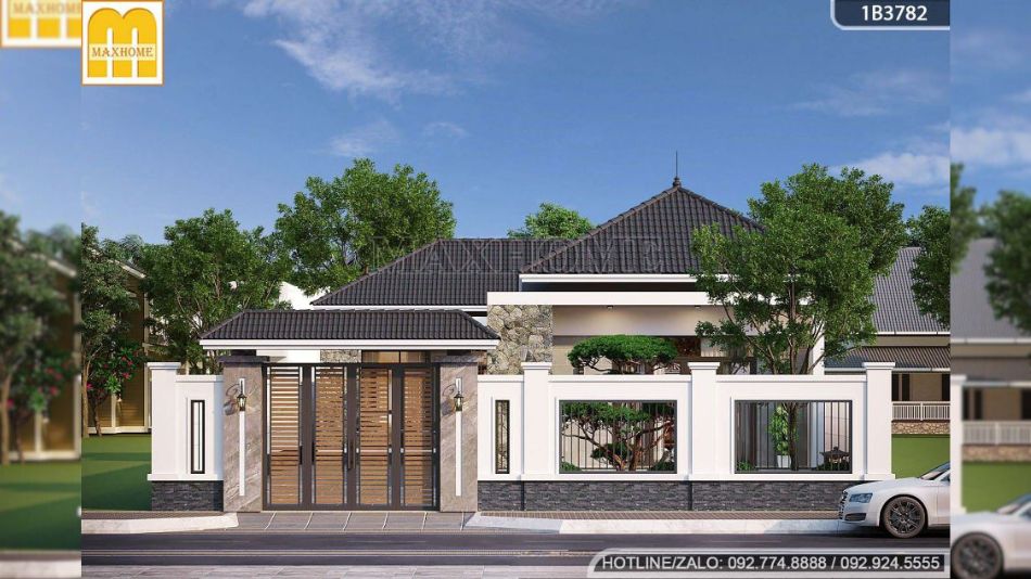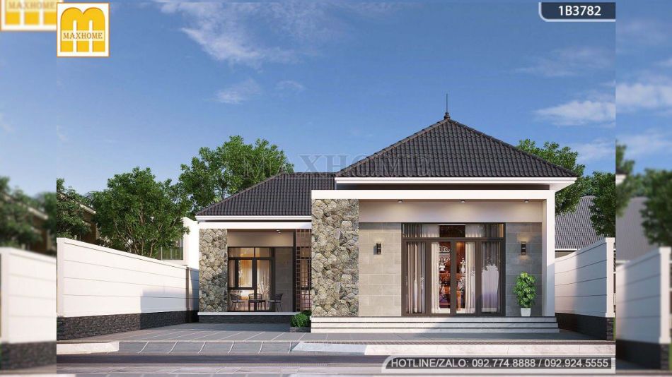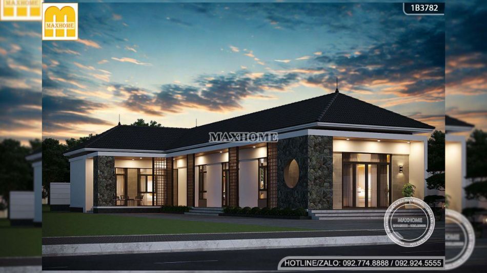 Mẫu nhà cấp 4 mái Nhật chữ L đẹp tại nông thôn sang trọng và hiện đại | MH05661