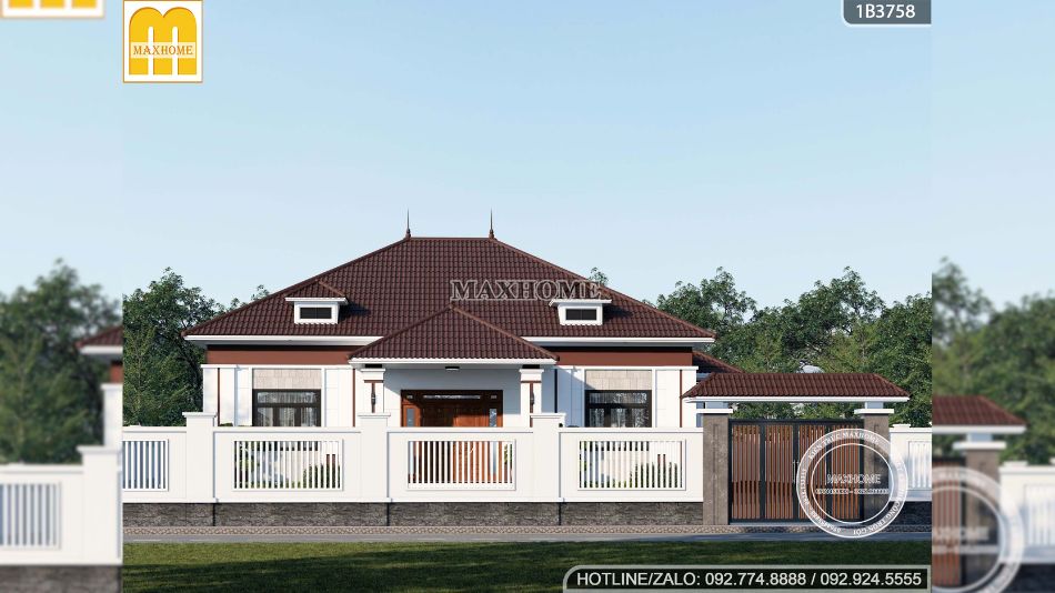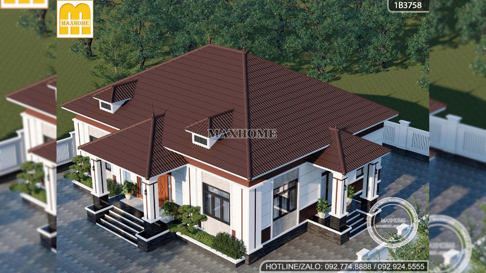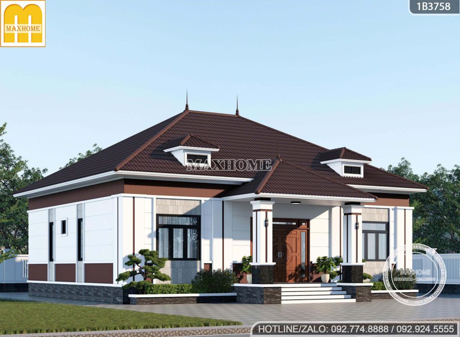 Trong các mẫu thiết kế nhà đẹp của Maxhome, yếu tố tối ưu hóa không gian luôn được đặt lên hàng đầu, tuy nhiên cách bố trí sẽ linh hoạt tùy theo diện tích từng khu đất. Với công trình nhà cấp 4 mái Nhật này, lợi thế về mặt bằng rộng rãi cho phép kiến trúc sư khai thác thêm sảnh phụ, giúp tăng khả năng lấy sáng – thông gió tự nhiên và mang lại sự tiện lợi hơn trong quá trình sinh hoạt hằng ngày.