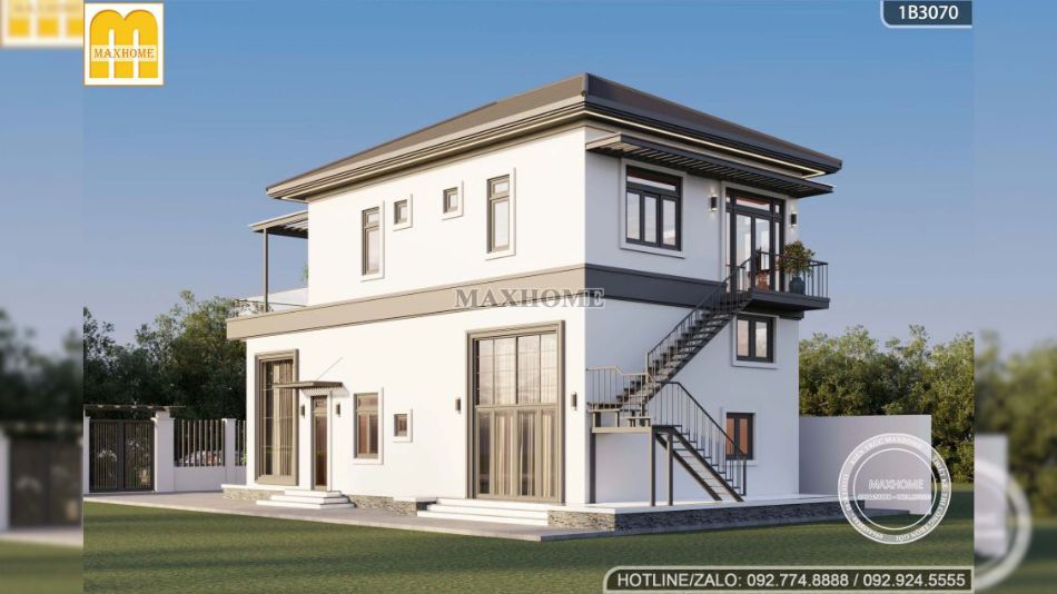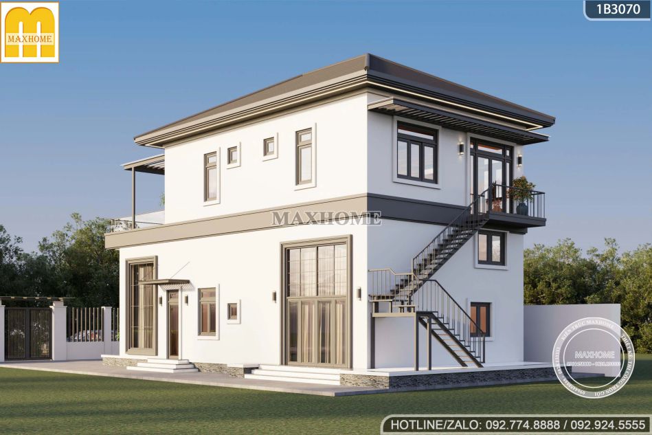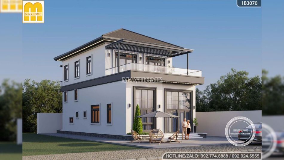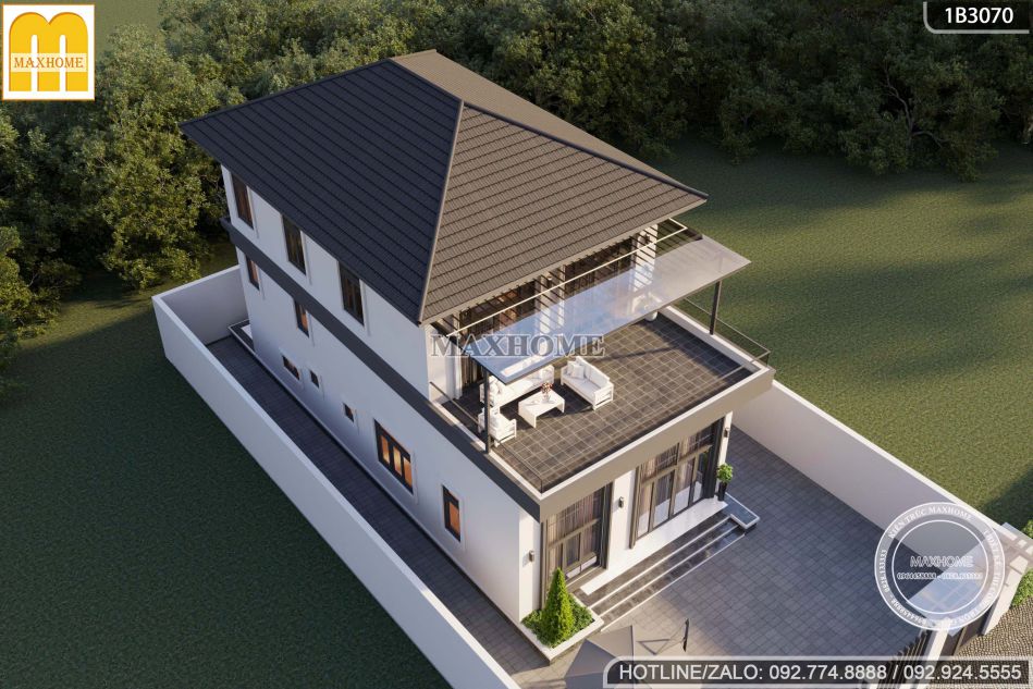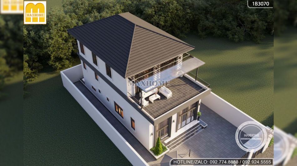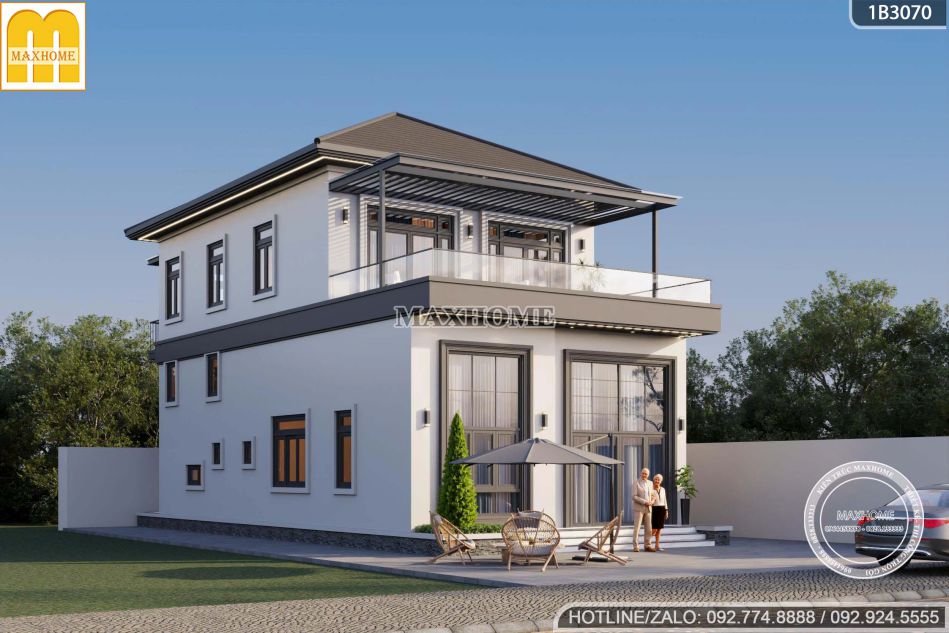 Mẫu nhà mái Nhật 2 tầng 1 lửng được thiết kế theo phong cách hiện đại với hình khối kiến trúc độc đáo, tạo nên tổng thể hài hòa và cuốn hút. Bố cục không gian được Maxhome tính toán khoa học, đảm bảo công năng sử dụng hợp lý, phù hợp với những gia chủ mong muốn có một ngôi nhà vừa đẹp mắt vừa tiện nghi. Đặc biệt, mẫu thiết kế này còn là lựa chọn lý tưởng cho các gia đình đông thành viên hoặc những ai muốn bố trí không gian sống cho 2 đến 3 gia đình nhỏ cùng sinh hoạt thoải mái trong cùng một ngôi nhà.