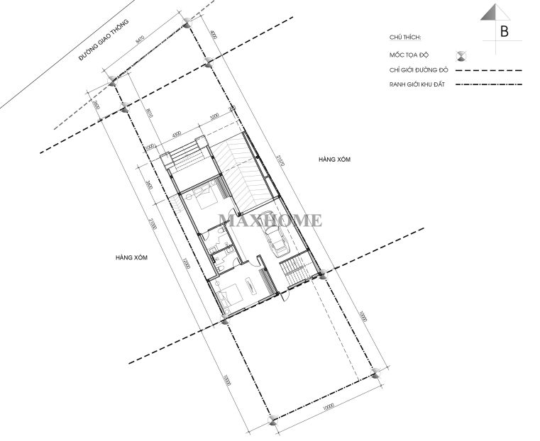 Công trình được định hướng xây dựng theo hướng Tây Bắc, phù hợp với phong thủy của gia chủ. Ngôi nhà có kích thước tổng thể 9,6m x 15m, với diện tích sử dụng khoảng 218m², đảm bảo không gian sinh hoạt rộng rãi và tiện nghi. Bố cục được tính toán khoa học, vừa đáp ứng nhu cầu công năng, vừa mang lại sự thông thoáng và thoải mái cho các thành viên trong gia đình.