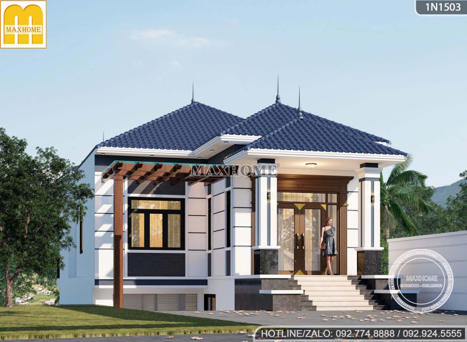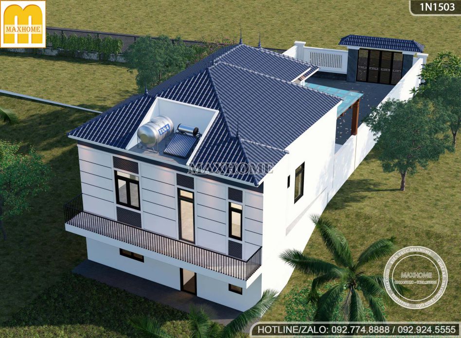 Mẫu nhà mái Nhật đẹp có tầng hầm và gara xe rộng rãi | MH05413
