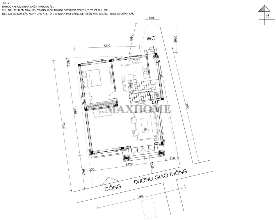 Ngôi nhà tọa lạc theo hướng Đông Bắc với kích thước 8,8 x 11,8m, tổng diện tích sử dụng 175m², mang đến không gian sống rộng rãi và tiện nghi. Các phòng chức năng được sắp xếp khoa học, hài hòa, tối ưu sự thoải mái cho mọi thành viên trong gia đình. Nhờ đó, ngôi nhà không chỉ đáp ứng đầy đủ công năng mà còn kiến tạo một môi trường sống lý tưởng, tiện lợi và hiện đại.