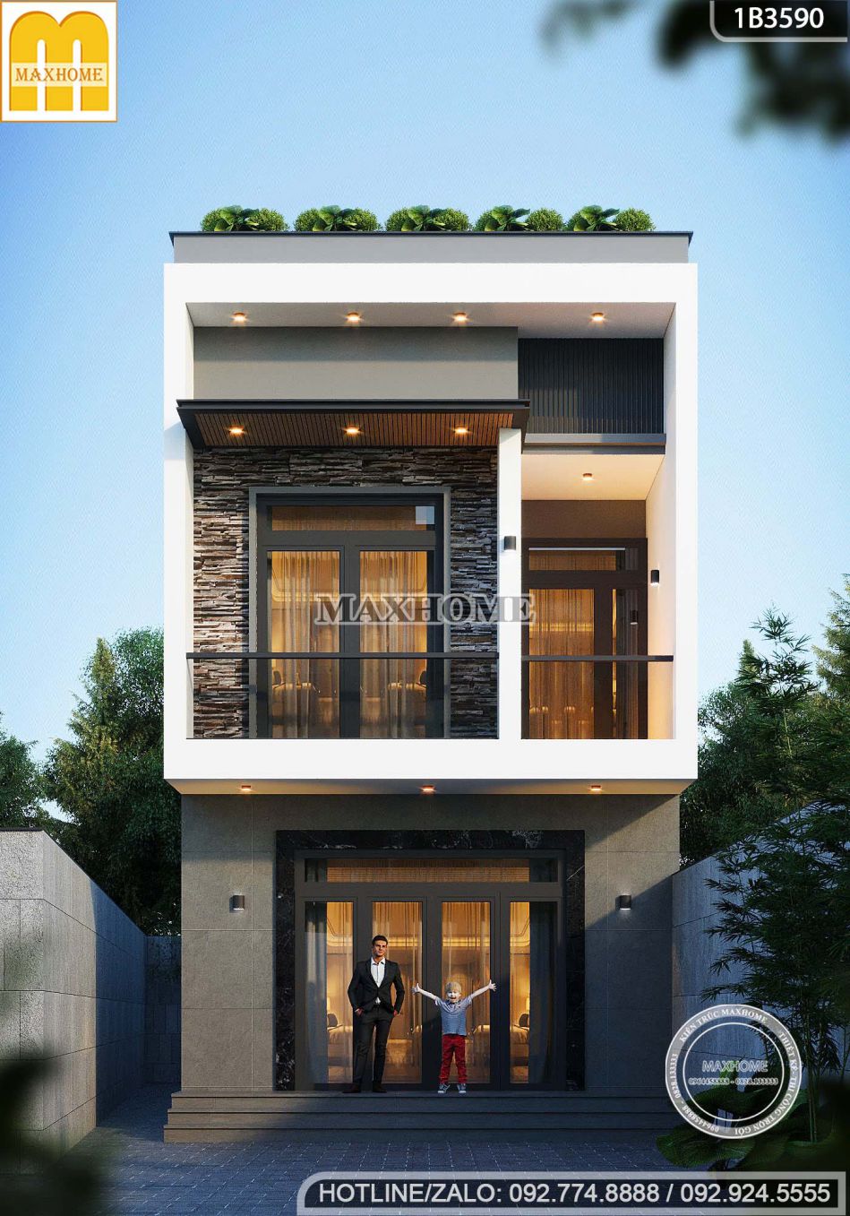 Mẫu nhà ống 2 tầng mặt tiền 5,5m hiện đại, tối ưu công năng và thẩm mỹ | MH05623