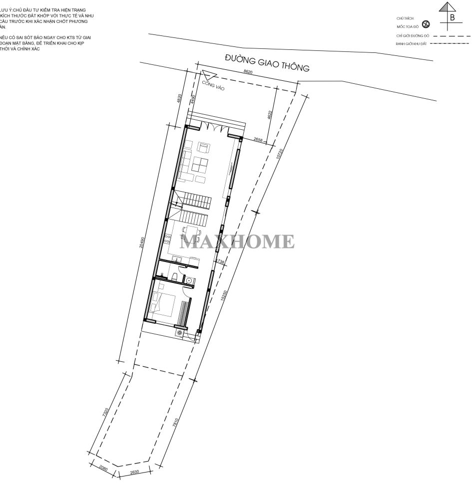 Nhà phố 2 tầng 1 tum được bố trí sát trục đường giao thông chính, thuận tiện cho việc di chuyển và kết nối sinh hoạt hằng ngày. Công trình sở hữu kích thước 5 × 17m, được khai thác tối đa quỹ đất, mang lại tổng diện tích sử dụng khoảng 185m². Với mặt bằng gọn gàng, bố cục hợp lý, ngôi nhà đáp ứng tốt nhu cầu ở kết hợp công năng linh hoạt, phù hợp với điều kiện xây dựng nhà phố tại khu vực đô thị hiện nay.