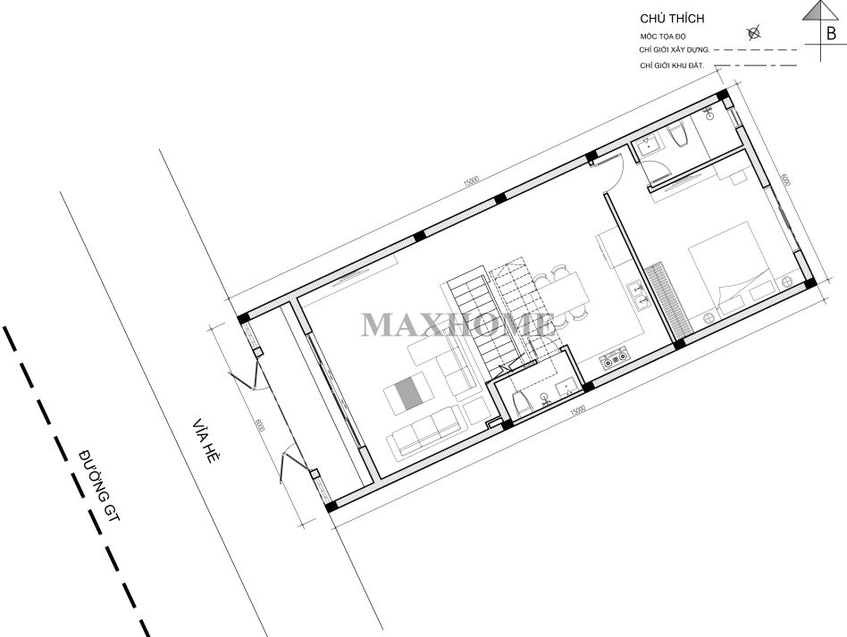 Công trình tọa lạc trên mảnh đất hướng Tây Nam, giúp ngôi nhà luôn đón nhận được ánh sáng và gió tự nhiên, đồng thời hợp mệnh phong thủy của gia chủ. Công trình có kích thước 6 x 15m, tổng diện tích sử dụng khoảng 210m², KTS đã khéo léo quy hoạch không gian sống tiện nghi, mang đến một tổ ấm vừa hiện đại vừa mang giá trị bền vững theo thời gian.