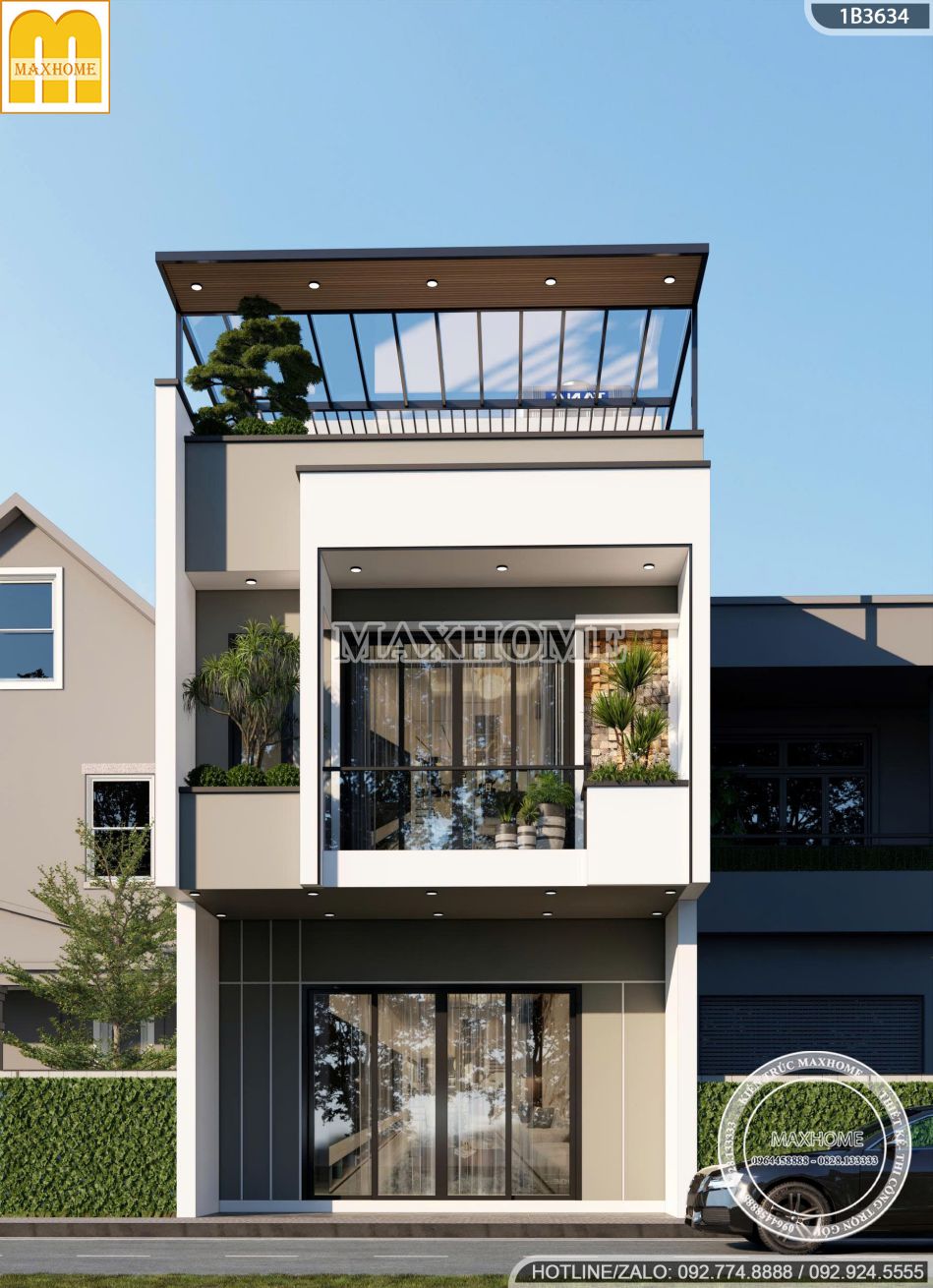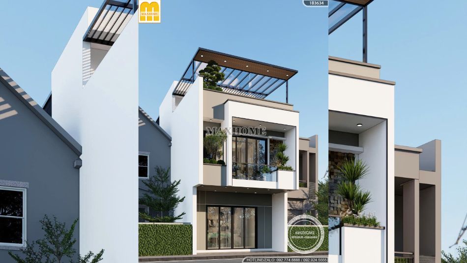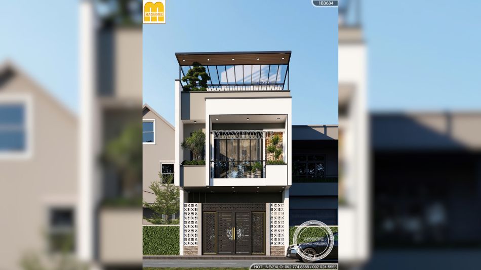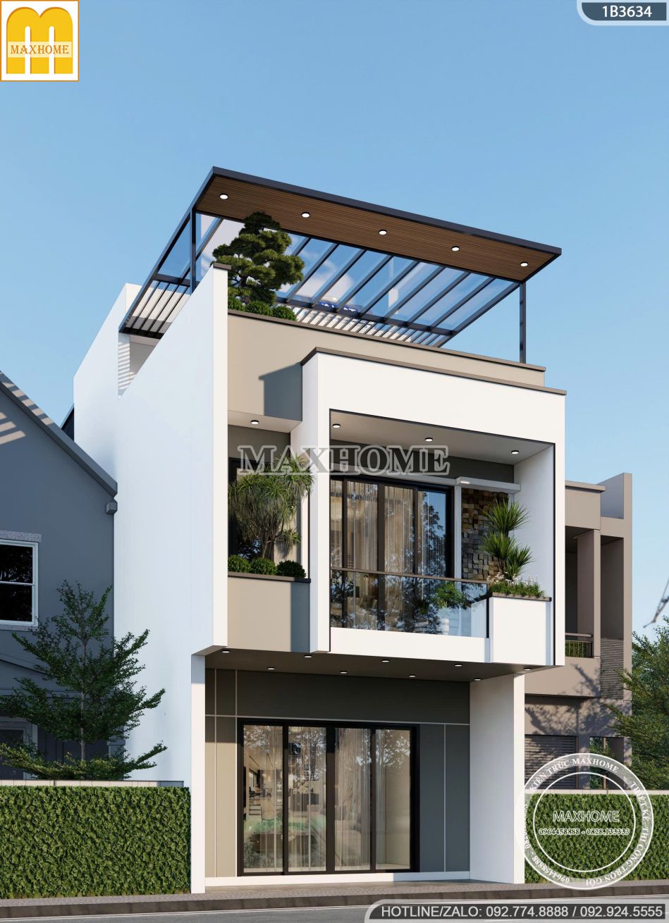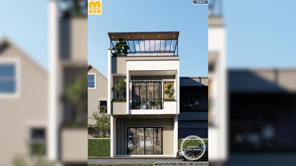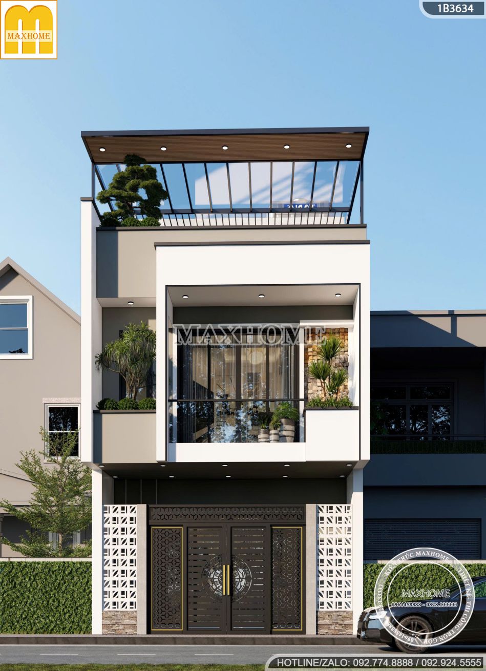 Mẫu nhà phố 2 tầng 1 tum mặt tiền 6m của gia đình chị Hà tại Bắc Ninh là lựa chọn hoàn hảo cho những ai yêu thích vẻ đẹp hiện đại, đề cao công năng và mong muốn sở hữu một tổ ấm mang đậm dấu ấn riêng – nơi mỗi chi tiết đều toát lên sự sang trọng, tinh giản và đẳng cấp. Dưới bàn tay thiết kế chuyên nghiệp của đội ngũ kiến trúc sư Maxhome, công trình mang một diện mạo đầy cá tính nhưng vẫn giữ được nét thanh thoát, phù hợp với nhịp sống năng động của đô thị ngày nay.