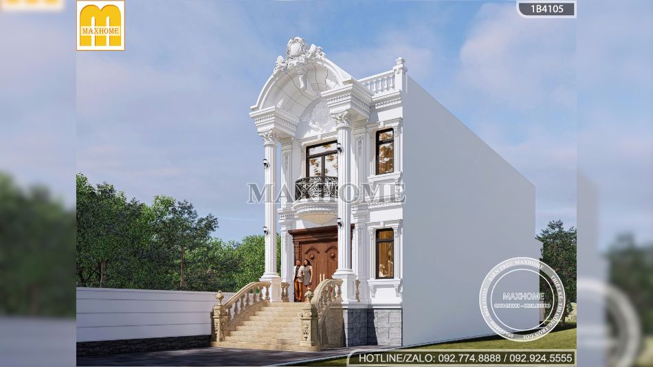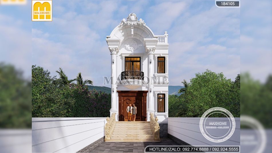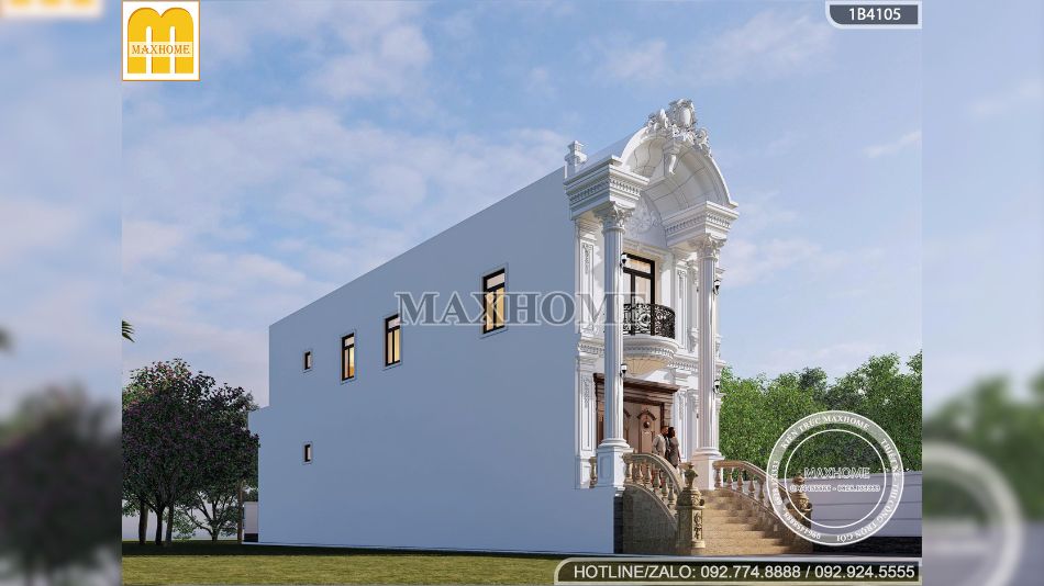 Toàn bộ công trình được bao phủ bởi gam màu trắng chủ đạo – sắc màu đặc trưng của kiến trúc tân cổ điển, mang đến cảm giác tinh khôi, sang trọng và trường tồn với thời gian. Nền trắng thanh nhã không chỉ tôn lên vẻ đẹp của các chi tiết phào chỉ, hoa văn trang trí tinh tế mà còn giúp tổng thể công trình luôn nổi bật, sáng sủa và cuốn hút dưới mọi góc nhìn.