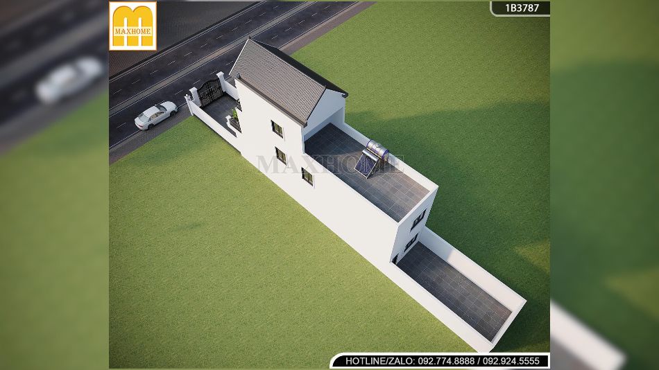 Từng đường nét đều được tính toán tỉ mỉ, đảm bảo tỉ lệ hài hòa giữa khối nhà chính và phần mái Thái phía trên. Kết cấu 2 tầng 1 tum không chỉ là sự phân chia về công năng mà còn tạo nên nhịp điệu thẩm mỹ, giúp công trình vừa cao ráo vừa mềm mại, thu hút ánh nhìn từ mọi góc độ.